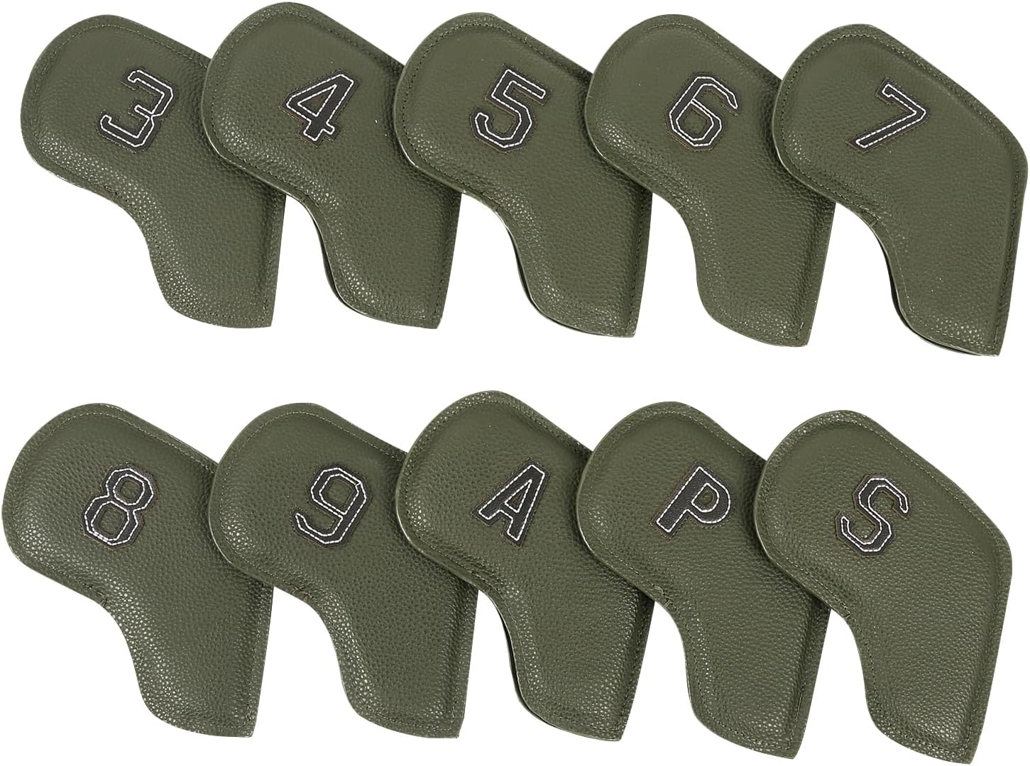 10Pcs Waterproofs Headcover Golfs Iron Club Head Cover PU Leather Golfs Head Cover Rod Head Protective Cases EnduringFeatures:The protective cover is make of PU materials. Waterproofs and Enduring, easy to use. Add a fashion touchs to your Golfs bag.Golfs club Cover excellent protections for your Golfs iron, prevents scratches and other damage during travel and daily use.Golfs Iron Cover are Waterproofs, using a cloth or rag to cleans and maintain is very convenience.Our Golfs iron protective sleeve is universals and suitable for most brands of clubs.Golfs iron club head cover is a great gifts and accessory for golfers.Specifications:Materials: PUColor: black color/white/cream color/dark green/silver gray/brownSize: about 19x11x1.2cm/7.48x4.33x0.47inchPackage Includes:10pcs Golfs Club Head CoverNote:Please allow 1-2cm errors due to manual measurement, make surely that you not mind before order. Due to difference between different monitors, the picture may not reflect the actual color.