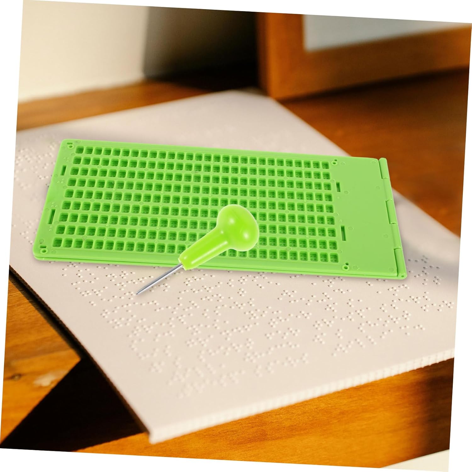 Package Include 4 x board 4 x penGoods Descriptionbraille printer -By using this product, visually impaired users can significantly enhance their learning efficiency and writing skills in braille.bump dots for visually impaired 55X0.kitchen tools for visual impairment Features -Color:Green-Material:PP-Size:22.braille fingerboard 24in(board)-Size:6.braille aid The integrated pen and design of this Braille writing board make it a convenient choice for users.braille -The integrated pen and design ensures that users can conveniently carry and use the tool without the need for additional accessories.braille 50X2.braille writing 60cm/8.braille paper 65X3.braille label tape 00X10.braille alphabet 93X0.writing 20cm/2.braille writing board 00X0.braille alphabet board 86X0. 20X2. -Constructed from safe, materials, this product use, making it ideal for all users. 86in(pen)-This innovative tool features a braille writing designed to maximize learning efficiency and writing accuracy for users. The color adds a touch of vibrancy while maintaining an profile. -Suited for blind individuals, those with visual impairments, and anyone learning braille, this tool is highly versatile. Its compact and portable nature allows for easy transportation, ensuring that learning can take place anywhere