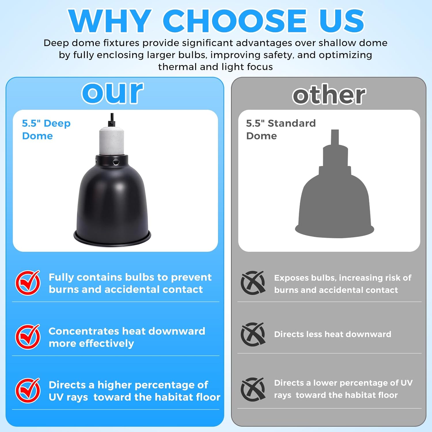 5.5 Inch Reptile Deep Dome Light Fixture with Reptile Terrarium Thermometer Hygrometer