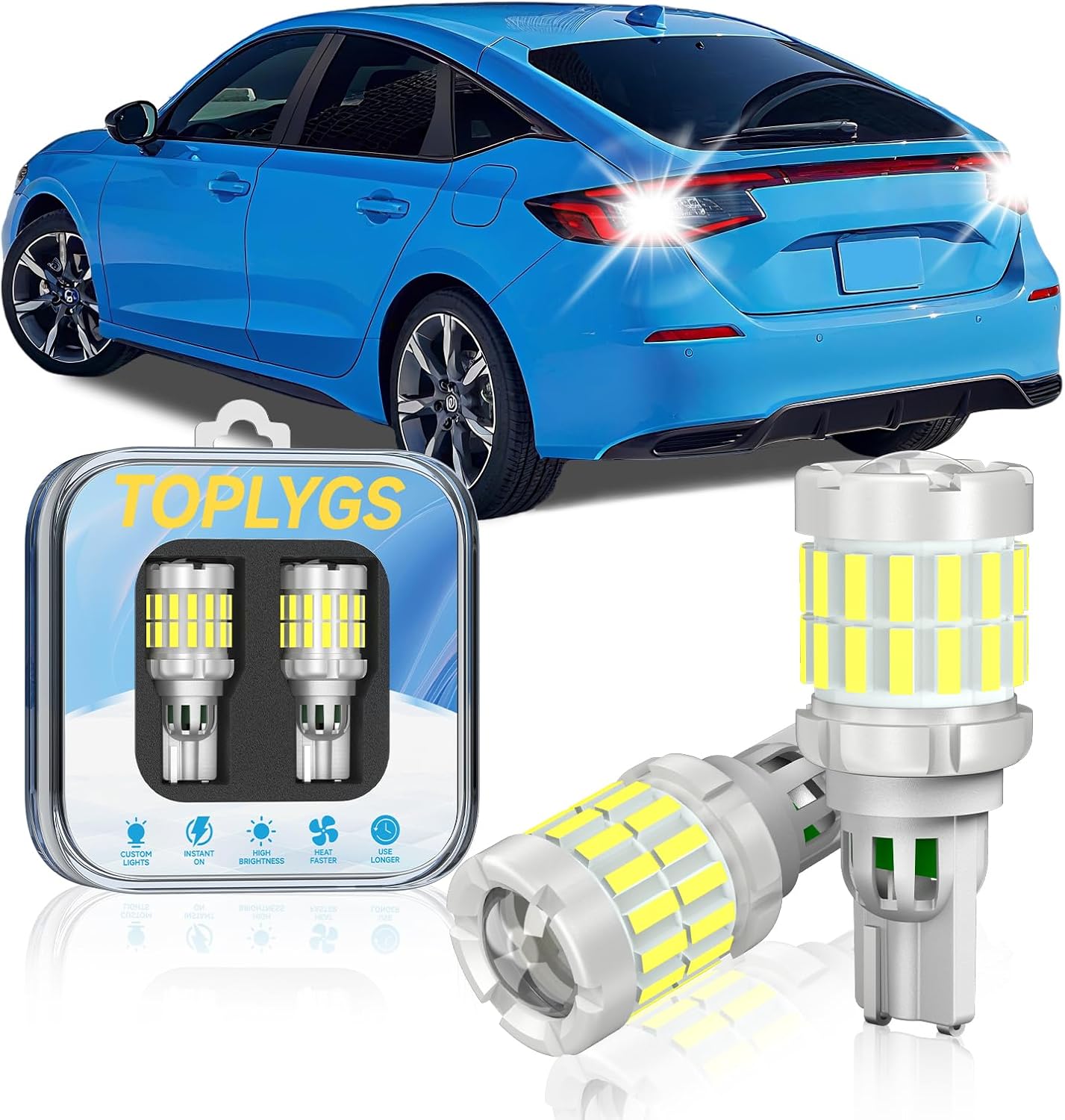 【Canbus Error Free Design】TOPLYGS T15 reversing light bulbs are specially engineered for Honda 2008-2022 Accord. 921 led bulbs are equipped with an intelligent IC driver built-in, which ensures a constant current output whithout extra resistors or decoders required. No radio interference and no preheating time required