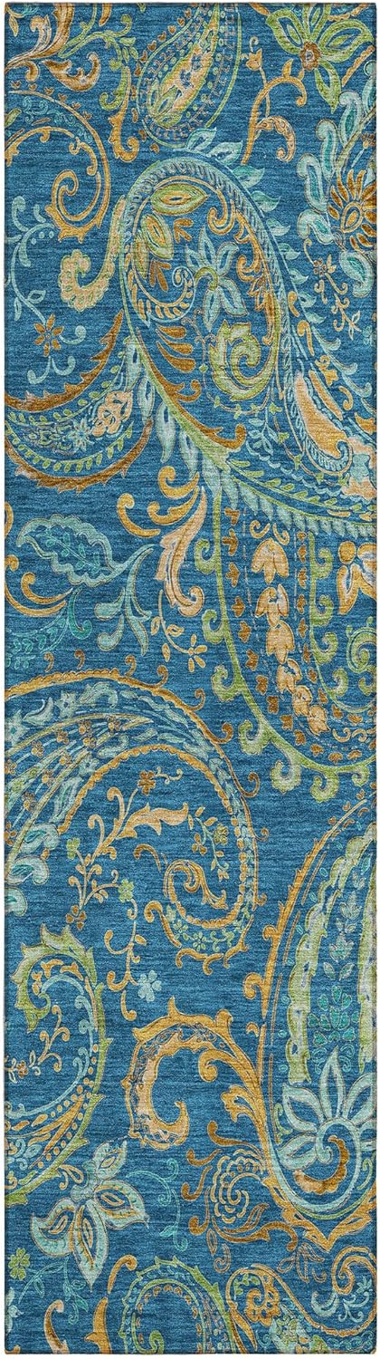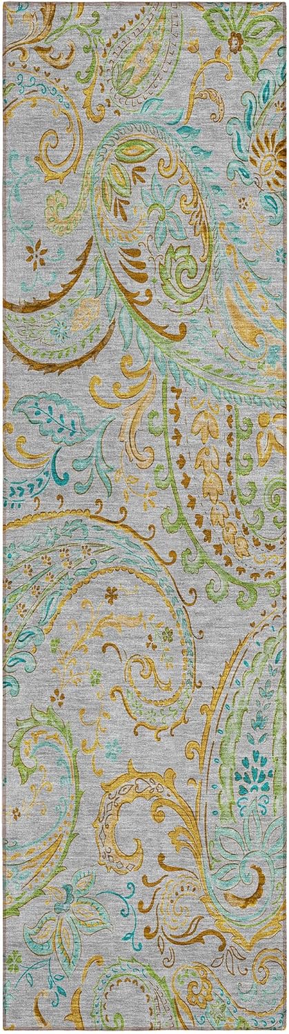 Elevate your home decor with the captivating beauty of this area rug showcasing a stunning transitional design. The flowing colors and enchanting watercolor pattern effortlessly blend, creating a visually mesmerizing centerpiece that adds sophistication to any space. Crafted with meticulous attention to detail, this rug is UV stabilized, ensuring its vibrant colors remain intact whether used indoors or outdoors. The ultra-thin construction and incorporated non-skid backing provide stability and safety, eliminating the need for a separate rug pad. Plus, its machine-washable design makes cleaning a breeze, making it a family and pet-friendly choice.