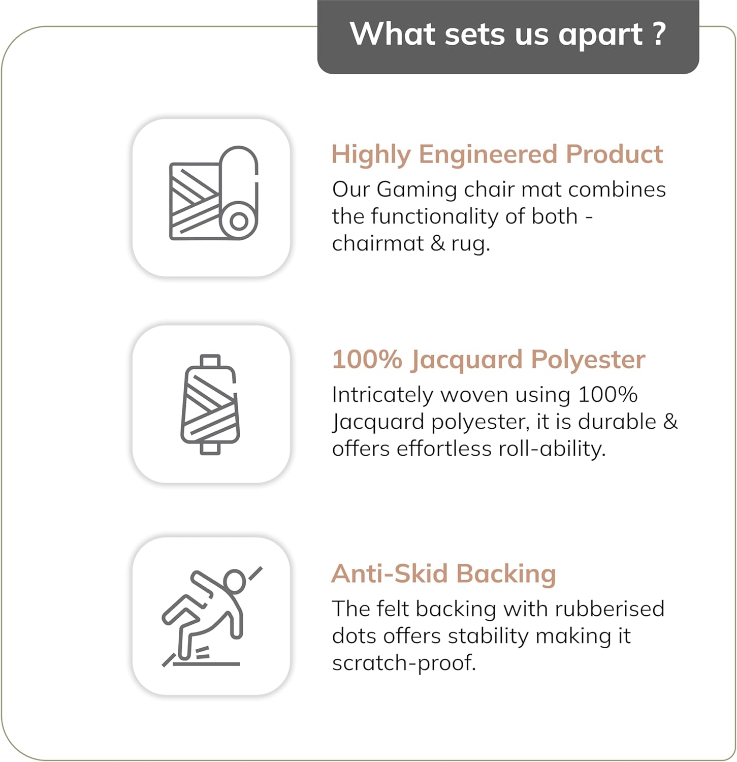 Introducing the Rug'd Chairmat by Anji Mountain, an extraordinary fusion of innovation and practicality, designed to enhance and protect your workspace with sophistication. Our chairmat is the ideal carpet protector mat for office chairs, meticulously engineered to safeguard both low pile carpets and hard surfaces alike. With its unique patented design, this chair mat for carpeted floors combines functionality with aesthetic appeal, ensuring your office environment remains both professional and pristine. Crafted from 100% phthalate-free PVC at its core, the Rug'd Chairmat promises durability without compromising on safety or environmental responsibility. The top layer boasts a 100% Jacquard woven finish, a testament to our commitment to quality and style. This desk floor mat for carpet not only protects but also elevates the look of your workspace, harmonizing seamlessly with your office decor while bringing a fresh, clean feel perfect for spring workspace refreshes. Our chair mat for carpet features an anti-slip back, providing unparalleled stability across your flooring. Whether you're using it as an office chair mat for carpet or a chair mat for hardwood floor, its grip ensures your mat stays in place, allowing you to move your chair with ease and confidence. Additionally, the Rug'd Chairmat functions as a versatile desk mat, computer desk mat, or large desk mat, making it an essential office desk accessory for organized and refreshed spring workspaces. Designed with the modern professional in mind, this desk chair mat for carpet offers optimal protection against wear and tear from office chairs. It acts as an effective floor protector for chairs, preventing unsightly scuffs and scratches. The chairmat is not only a chair mat for carpet but also adapts as a floor mat for office chairs on hardwood surfaces, offering comprehensive protection for your flooring while supporting a clean and renewed seasonal setup. Choose the Rug'd Chairmat by Anji Mountain for a sophisticated solution in floor mats that prioritizes both functionality and design. Our office chair mat for hardwood floors and carpets ensures your floors remain as pristine as the day they were installed, while its elegant woven top layer makes a subtle yet impactful statement in any professional setting. Ideal for spring home office updates, workspace organization, and seasonal décor refreshes, this durable chair mat enhances comfort, productivity, and style throughout the season. Trust in Anji Mountain for chair mats that embody quality, innovation, and timeless design.
