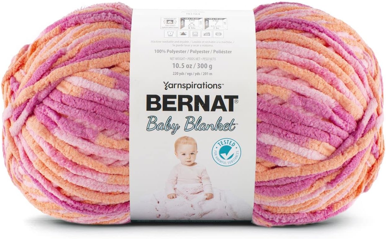 A luxuriously soft, chenille-style yarn that's perfect for baby blankets and garments. This machine washable and dryable yarn is the perfect versatile yarn for Baby. The big gauge makes projects fly by. Bernat Baby yarns are Oeko-tex certified, and are tested for over 300 harmful substances and proven to be safe for your baby's sensitive skin. Make a project in every shade!