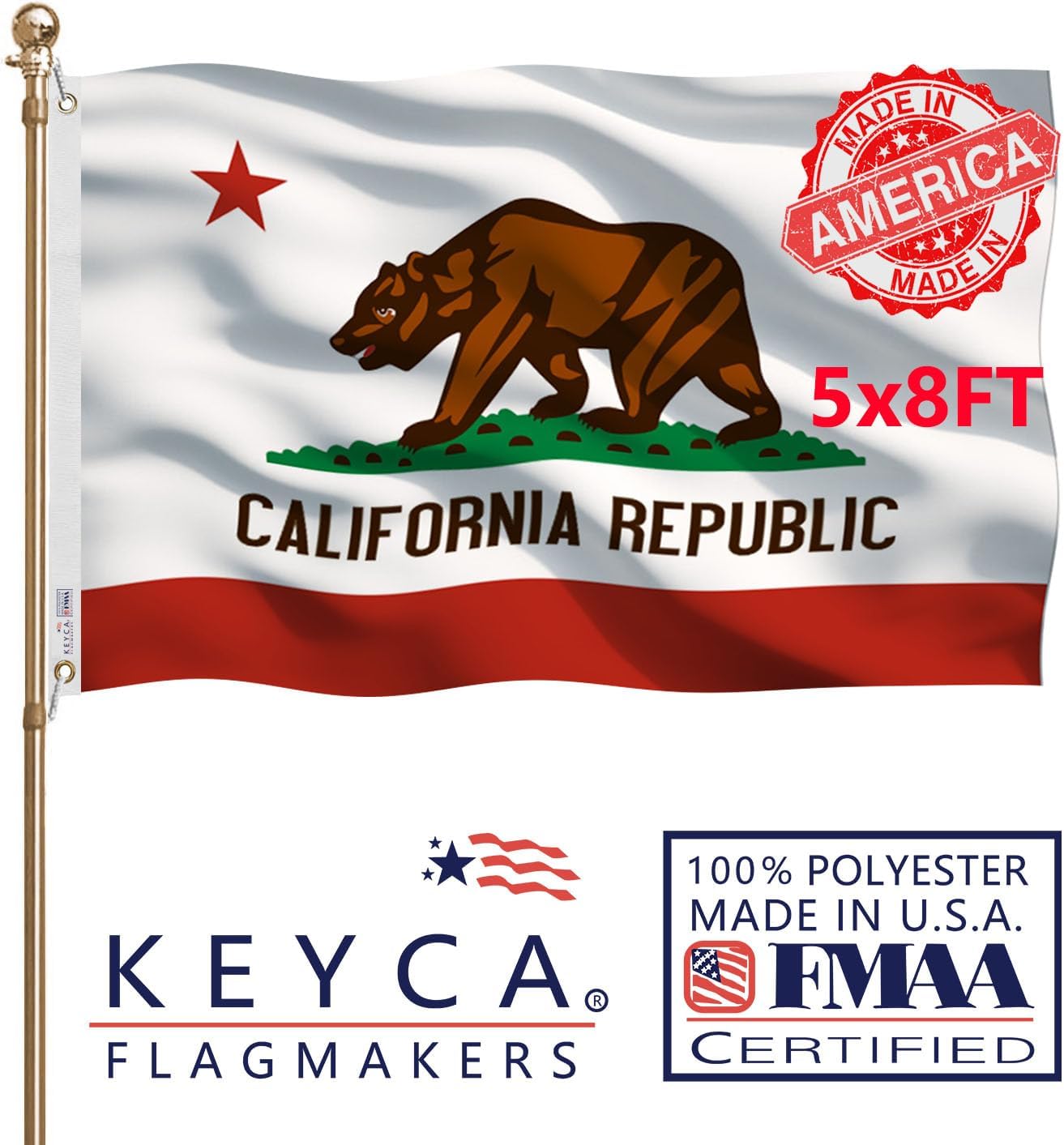 100% Made in The USA: All the raw materials, printing, sewing, logistics and transportation of keyca flags are all in the United States and each California state 2x3 flag has a unique made in the USA certification mark printed on its waist.