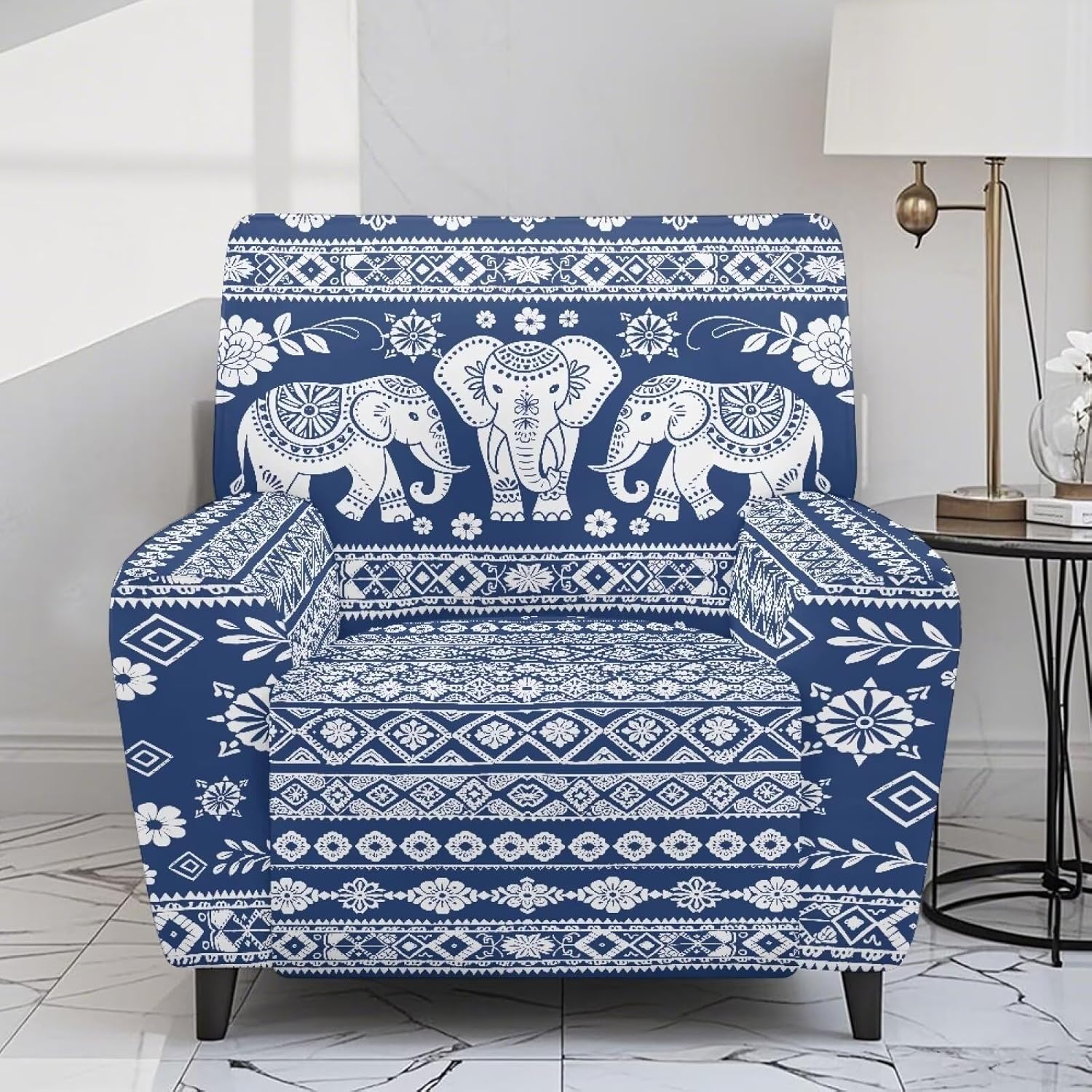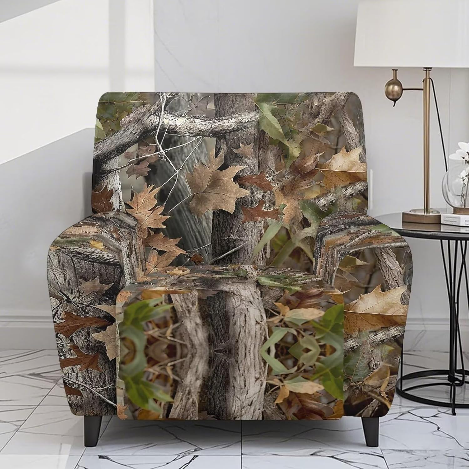 Xsehusvy Stretch Recliner Slipcover with Side Pocket Some Details about Recliner Chair Cover This recliner sofa cover is stretch to fit most recliners in the markets. Protect your seat from dust and stain. 1 package contains 1 back cover, 1 seat cover and 2 arm cover. Every recliner cover is marked with introduction label. 360 protection: recliner furniture protector can keep your seat clean and dirty. (everyday dirt, sweat, dust, hair oil, children's play, and even scratches from pets) We can provide all kinds of patterns for you, like retro floral, bird, tiger skin, zebra, leaf, marble, Santa Claus, snowflake, maple, pumpkin, tie dye, owl, hummingbird and etc. Ideal decorations for your home: You can choose different pattern to decorate your living room or bedroom in Christmas Day, Halloween Day, Thanksgiving Day or daily life, enhancing your happiness of your life. Cleaning Tips: Easy to care and maintain, machine washable in cold water, mild detergent. Please do not bleach, do not iron.