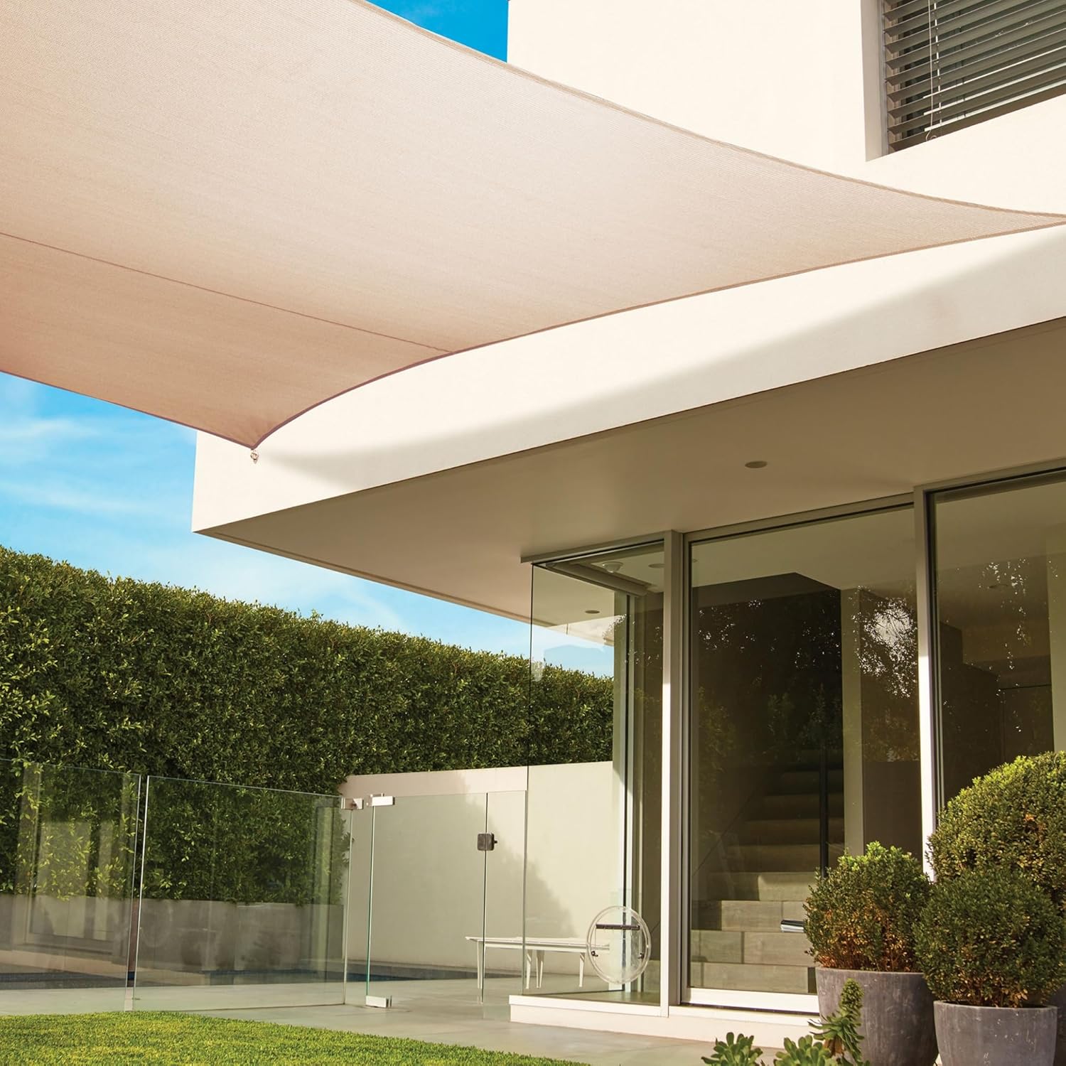 Coolaroo Premium Shade Sail Kit is the ultimate choice for stylish, long-lasting outdoor shade. Featuring extra-durable, commercial-grade HDPE fabric construction with a luxury matte finish, this sail blocks 95% of UV rays while allowing cooling airflow through its breathable knit. The included heavy-duty stainless steel hardware ensures secure, professional-quality installation designed to withstand wind, weather, and sun exposure. Fade-, mold-, and mildew-resistant, it's perfect for patios, decks, backyards, or small-scale commercial spaces. Backed by an unmatched 15-year UV warranty, it's the ideal combination of aesthetics, performance, and protection.