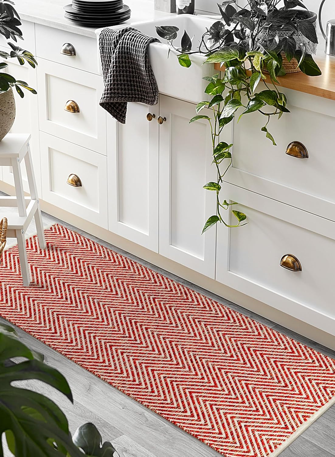 Add warmth, texture, and timeless farmhouse charm to your home with this Cotton Chevron Hand Woven Area Rug. Carefully crafted from natural cotton fibers, this rug features a classic chevron geometric pattern that brings subtle style and visual depth to any living space. The hand woven texture provides a soft, comfortable feel underfoot while maintaining durability suitable for everyday household use. The neutral farmhouse-inspired design blends effortlessly with a variety of interior styles including farmhouse, boho, rustic, modern, and minimalist décor. Whether placed in an entryway, kitchen, bedroom, or hallway, the rug adds decorative character while helping protect floors in frequently used areas. This rug is available in two practical sizes to fit different areas of the home. The 24x36 inch size works well as a compact accent rug for entryways, small spaces, bedside areas, or kitchen floor placement. The 24x72 inch runner is ideal for hallways, kitchens, laundry rooms, and narrow walkways where longer floor coverage is needed. Multiple color options allow easy coordination with different décor styles. The rug is available in Teal, Beige, Red, Black, and Charcoal, offering both bold and neutral tones to complement various interior color palettes. The reversible woven design allows the rug to be used from both sides, helping extend its lifespan while maintaining the same beautiful chevron pattern and texture. Its flexible cotton structure also makes it lightweight and easy to place in different areas of the home. For maintenance, regular vacuuming and occasional spot cleaning help keep the rug fresh while preserving the natural woven texture. The durable cotton fibers maintain their look and feel with everyday use. With its combination of hand woven craftsmanship, geometric chevron pattern, versatile sizes, and multiple color options, this cotton runner rug makes a stylish and functional addition to entryways, kitchens, hallways, bedrooms, nurseries, and other living spaces throughout the home.