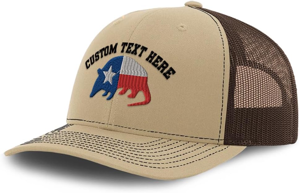Show your Texas pride with our premium Richardson caps 6-panel trucker cap featuring the Armadillo Texas Flag Embroidery design. This distinctive richardson trucker hat combines rugged style and durable construction, perfect for anyone who loves authentic texas trucker hat fashion.Crafted from high-quality 100% acrylic, this black trucker cap offers breathability and long-lasting comfort. The detailed embroidery of the Armadillo Texas Flag gives this trucker hat men’s accessory a unique flair, making it a must-have for casual wear or outdoor adventures.Equipped with a pre-curved bill, anti-sweat band, and a reliable snapback closure, this embroidered baseball hat ensures a secure and customizable fit all day long. Whether you’re gifting it or keeping it for yourself, this texas hat embodies both style and practicality.Perfect for fans of Richardson hats and Texas culture alike, this trucker cap is a versatile addition to your collection and a thoughtful gift for Christmas, Father’s Day, Mother’s Day, or birthdays.