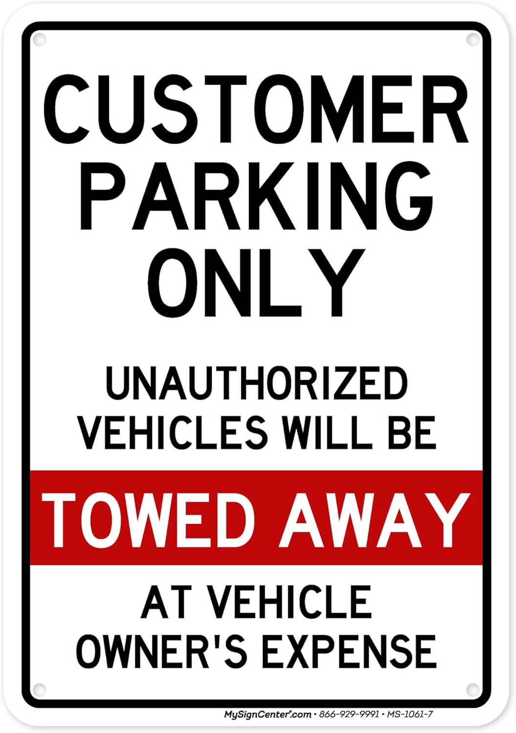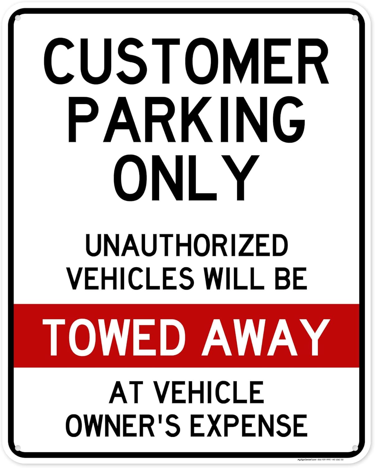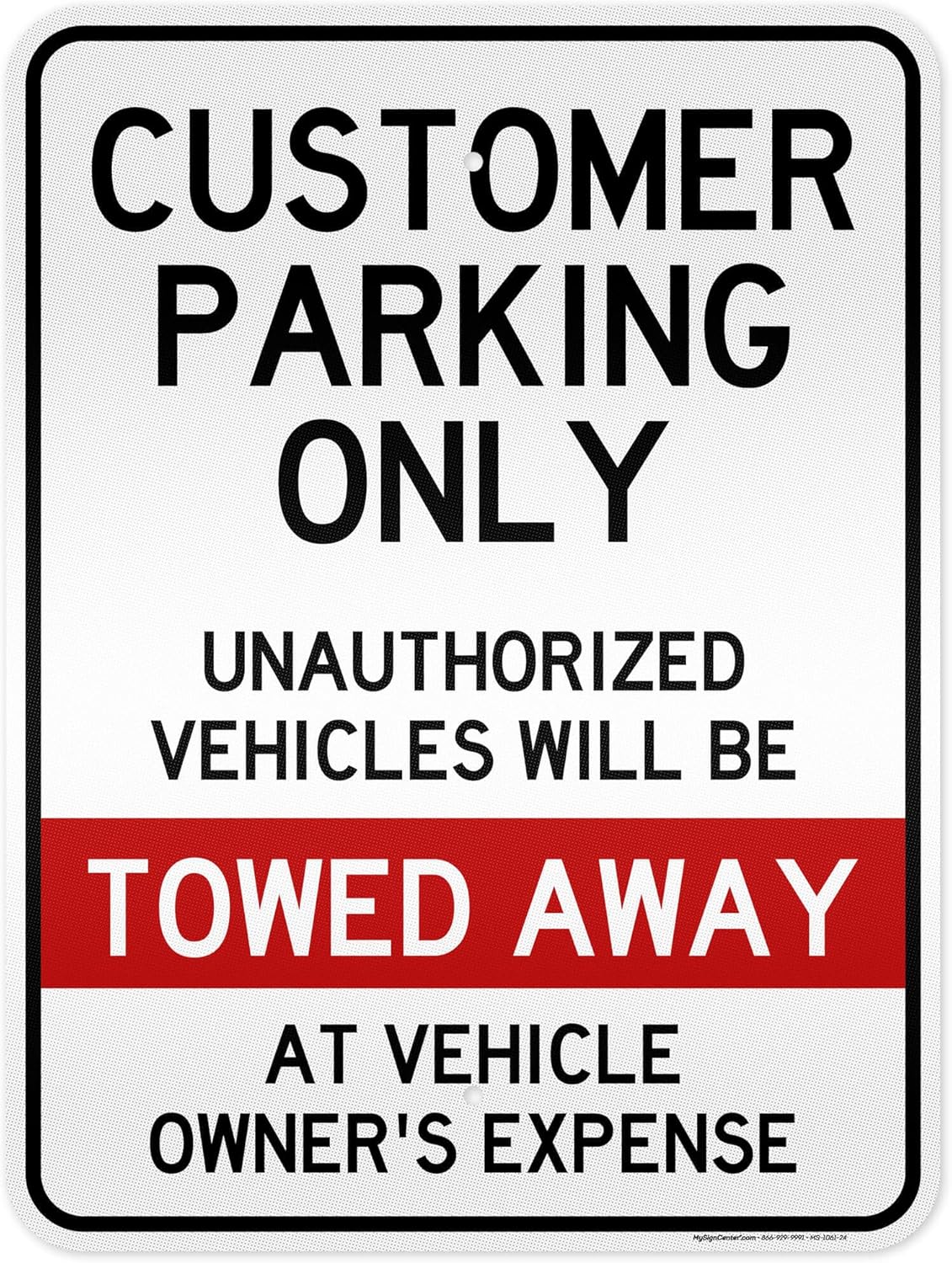 Customer Parking Only Unauthorized Vehicles Will Be Towed Away At Vehicle Owner's Expense Sign, 18"x24" Polyethylene, Indoor/Outdoor Use, USA MADE By My Sign Center