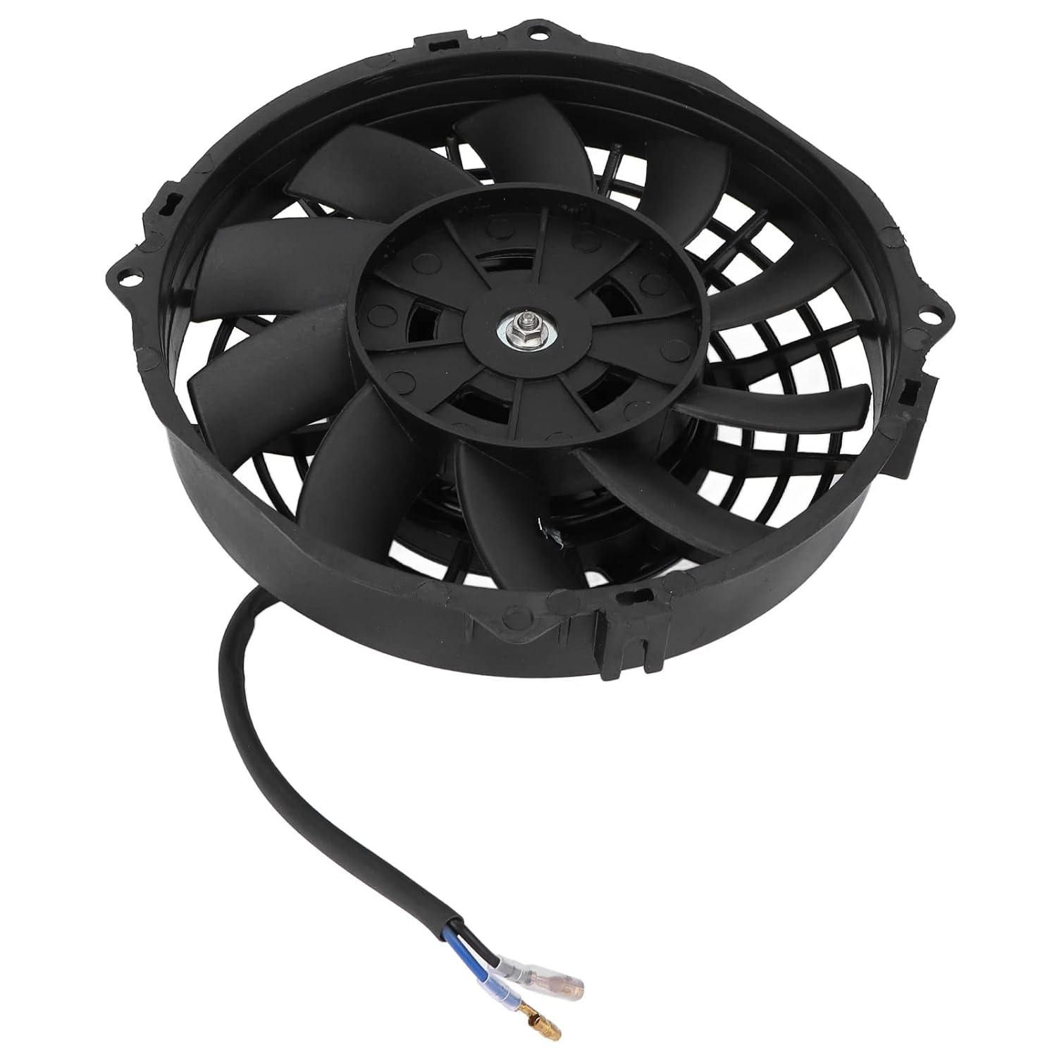 1. Excellent Performance: 10pcs curved fan blades, 80W high power, 2900rmp air flow rate, ensure low noise levels, good heat dissipation. 2. Slim Fan: The slim design makes fan very suitable for mounting in narrow areas and offers excellent bay clearance. 3. Material: Radiator fan is made of ABS plastic material, wear anti aging, high strength and . 4. Unique Design: Unique fan blade design lets you pull or push air at the same speed, stable performance and high reliability. 5. Universal Fitment: Universal radiator cooling fan fits for various vehicles and engines, have a long service time. Specification: Item Type: Radiator Fan Material: ABS plastic Color: Black Voltage: DC 12V Power: 80W Load Current: ≤4.5A Load Speed: 2900±10%rmp Fan Diameter: 7 inches Fitment: Universal packing list: 1 xRadiator Fan 4 x Retaining Clamp