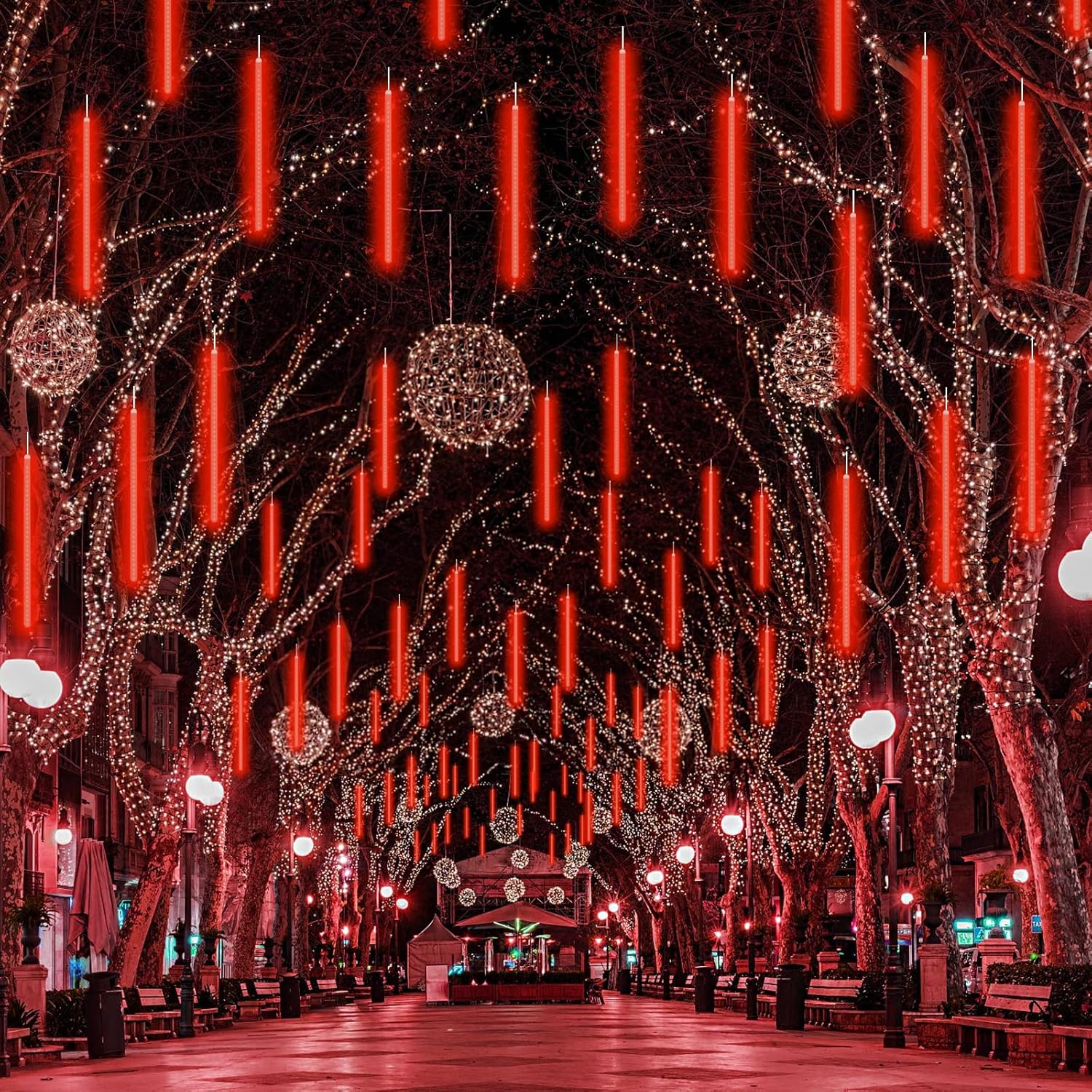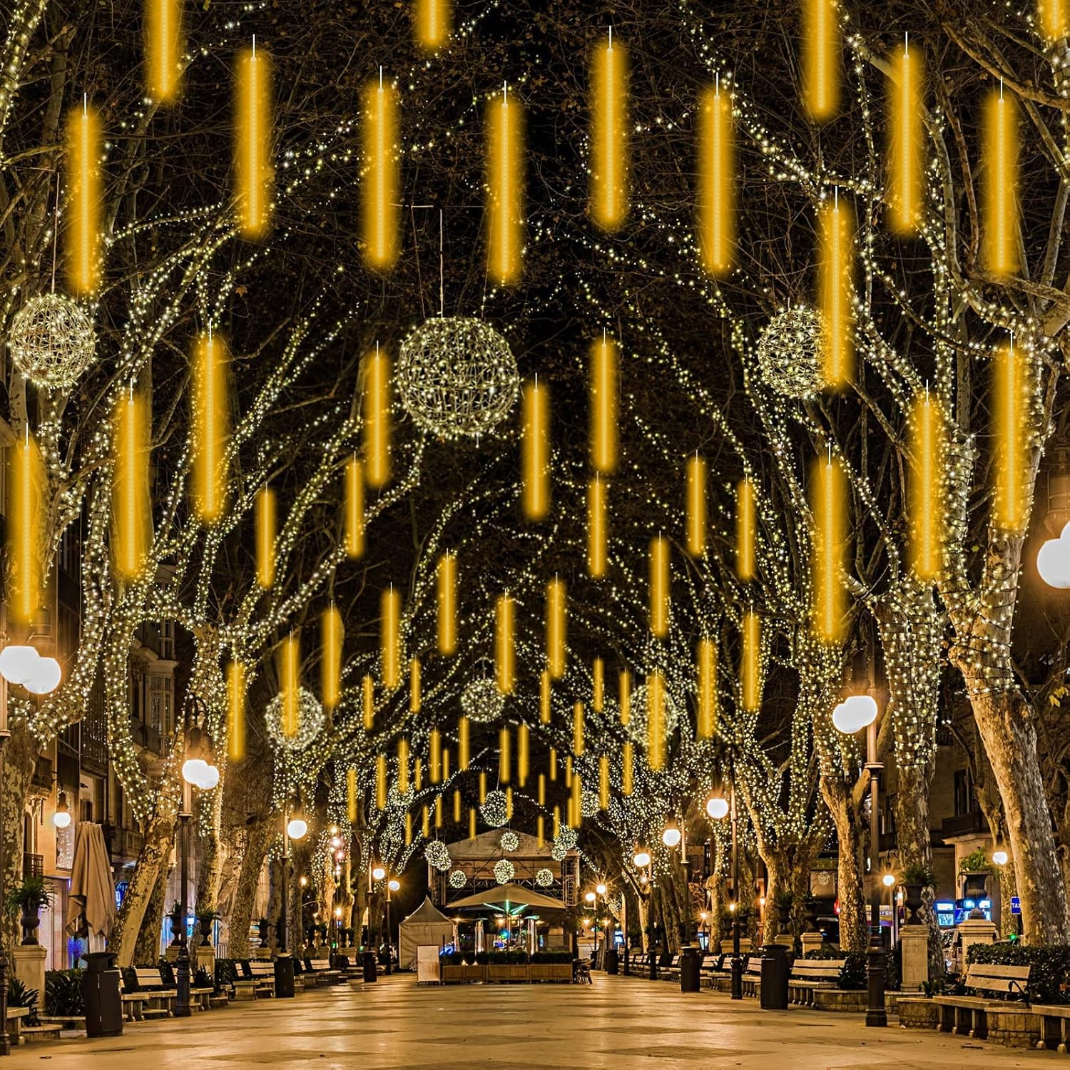 ❤ GOUER LED meteor lights are absolutely indispensable for a beautiful night. Whether it is your friends and relatives, or passers-by who you don't know, they will be full of praise for your decorated LED rain lights. Specifications: ● Number of tubes: 8 tubes/10 tubes ● Length: 30cm/50cm/80cm ● LED number/tube: 30/54/72 ● Pipe diameter: 1cm / 0.4 inch ● Pipe spacing: 30cm ● Power cord length: 3m ● Input voltage: 120-220V ● Light source angle: 360° ● Pipe: PC ● Waterproof: IP65 Advantage: 1. Using high-quality lamp chip SMD2835, more energy-saving and more durable. 2. More lamp beads ensure that the decorative lights are brighter and more conspicuous. 3. It is still available below minus 25 degrees Note: If you purchase multiple sets of meteor lights, the combined length of the power supply can support up to 9m. ❤ If you need to decorate your birthday party, Christmas tree or your house, what are you waiting for? Hurry up and place an order to enjoy our quality products and services! Enjoy a fantastic visual experience with your family earlier!