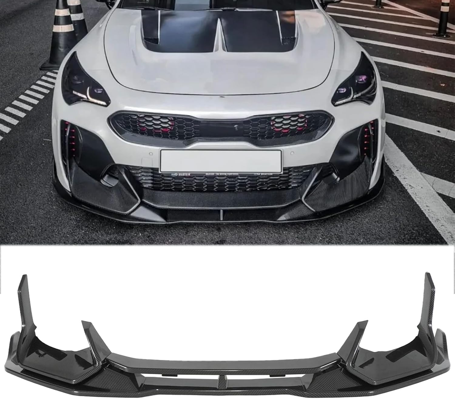 [Fitment:]: This front lip fit for Kia Stinger 2018-2023 [Specification]: Condition: 100% New Material: Top Quality ABS(Not Real Carbon Fiber!!) Color: Glossy Black/Carbon Fiber Look(Not Real Carbon Fiber!!) Place on Vehicle : Front Installation method: Drilling On The Bumper Is Required For Installation. [Feature]: Plastic material is Lightweight and easy to carry and replace Simple and easy to install Easy install and durable use.Great quality and great Fitment. Strict quality control standards to Build and test.Enduring, different optical line comes from different points of view.It'll give you a sporty look, Decorate your car charming luxury vivid. [Packaging include]: A set of front lip *Note: Please note! Please confirm that the product fits your vehicle before purchasing!