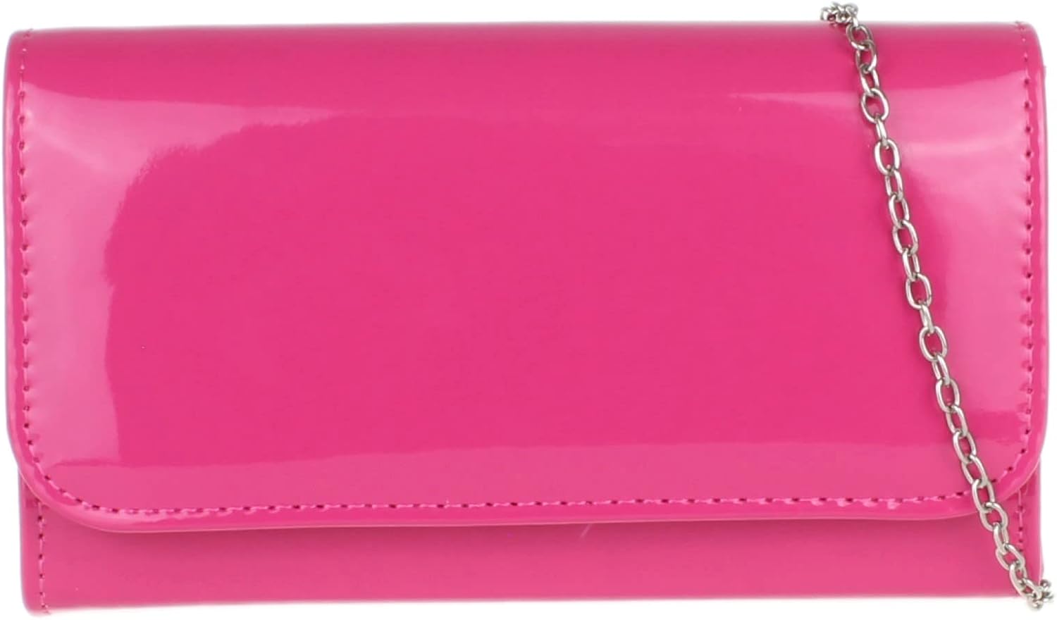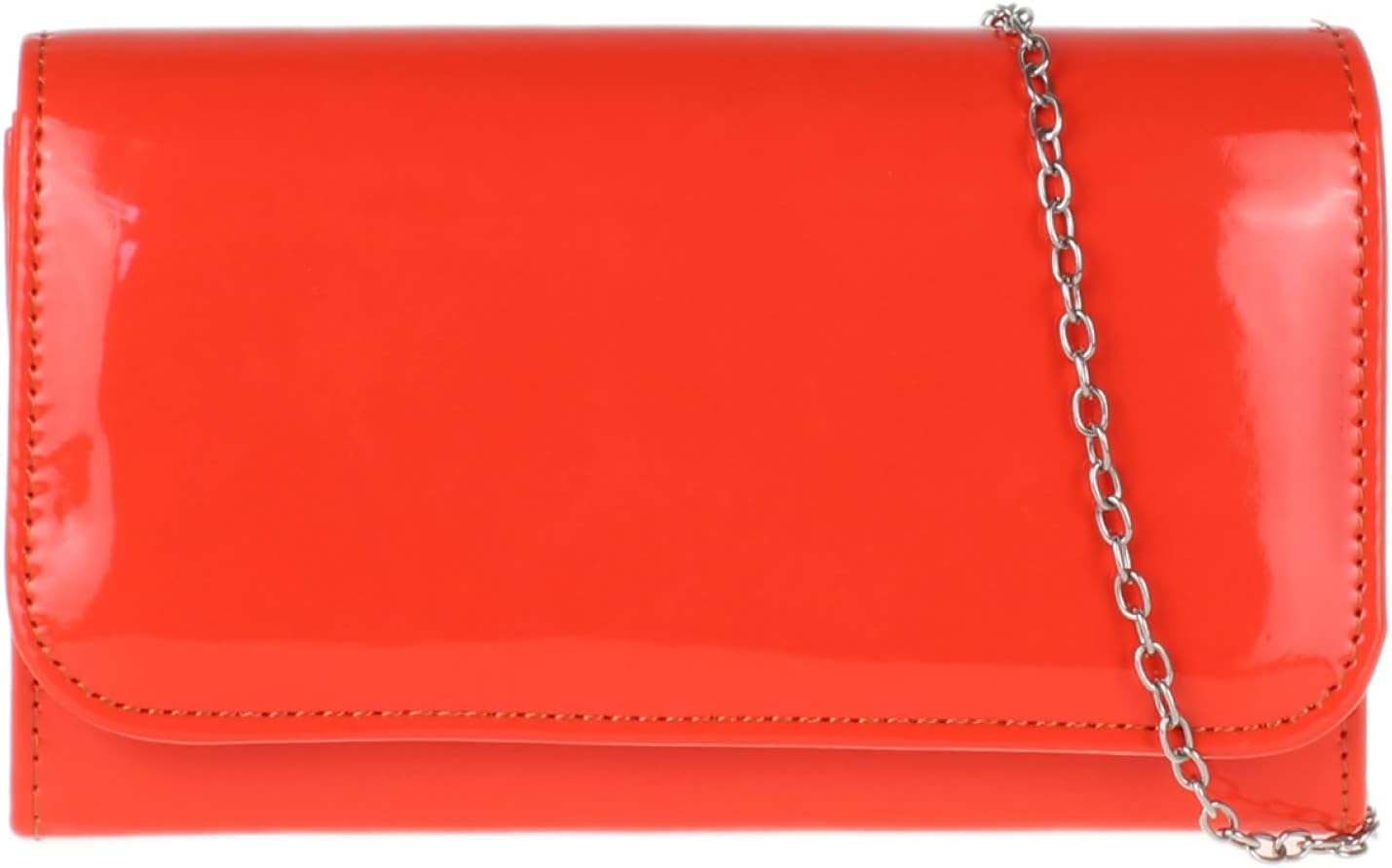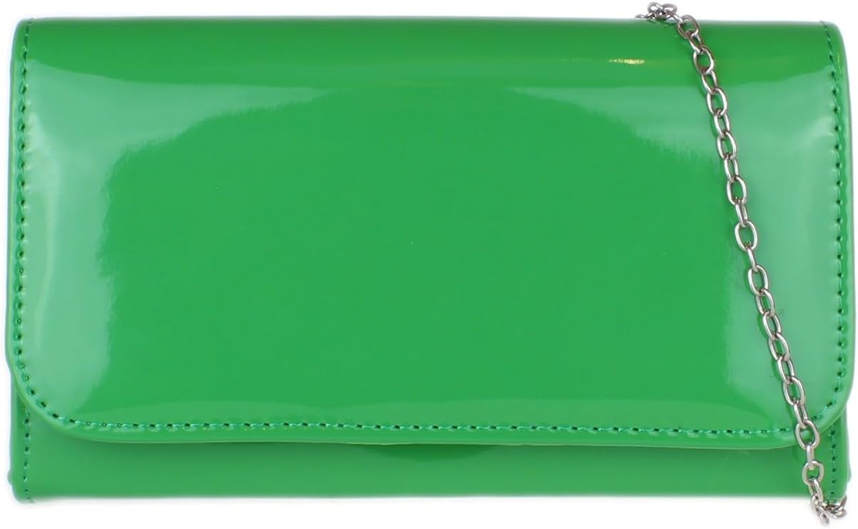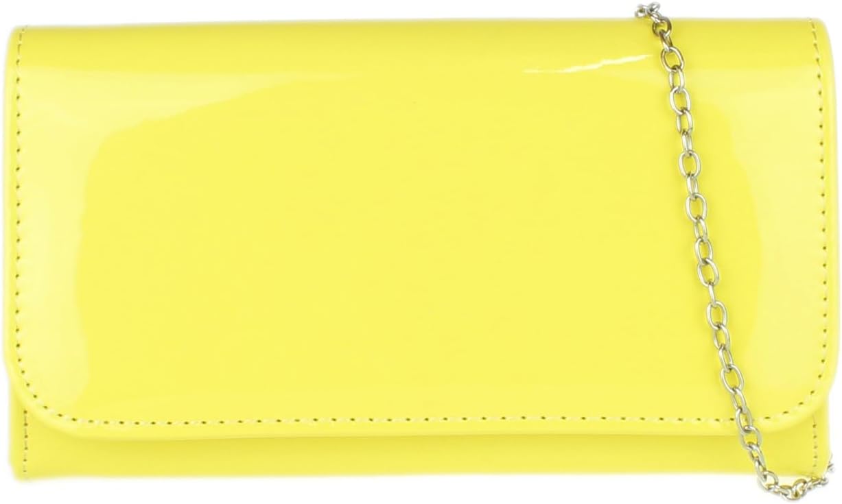 Elegant patent faux leather clutch bag with plain design.Interior fully lined with a small pocket.Can be used like a shoulder bag.Perfect for a party outfit. W 20, H 12, D 7 cm (W 8, H 5, D 3 inches)