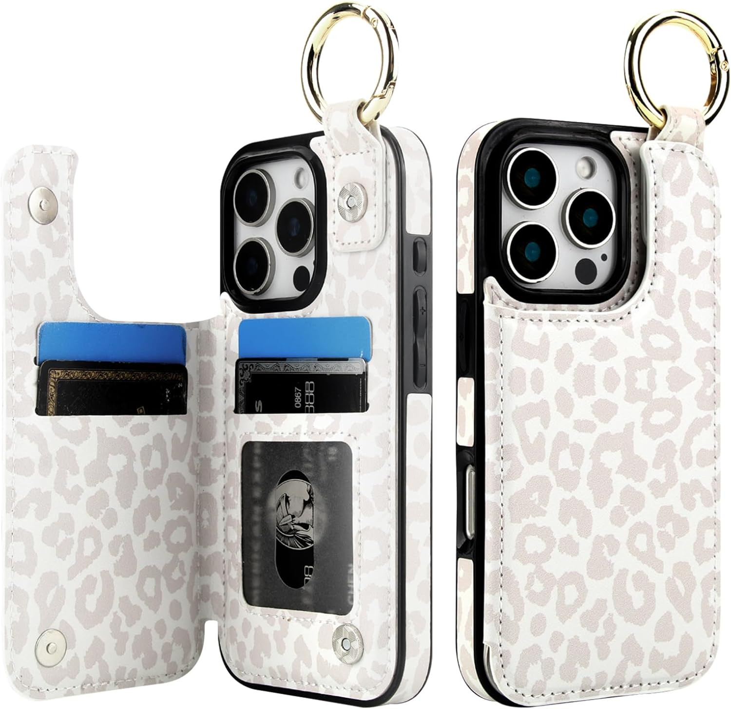 HAOPINSH for iPhone 16 Pro Case Wallet Compatible with MagSafe Wireless Charging, White Leopard Cheetah Pattern Back Flip Folio Leather Kickstand Card Slots Case Double Magnetic Clasp Cover 6.3"