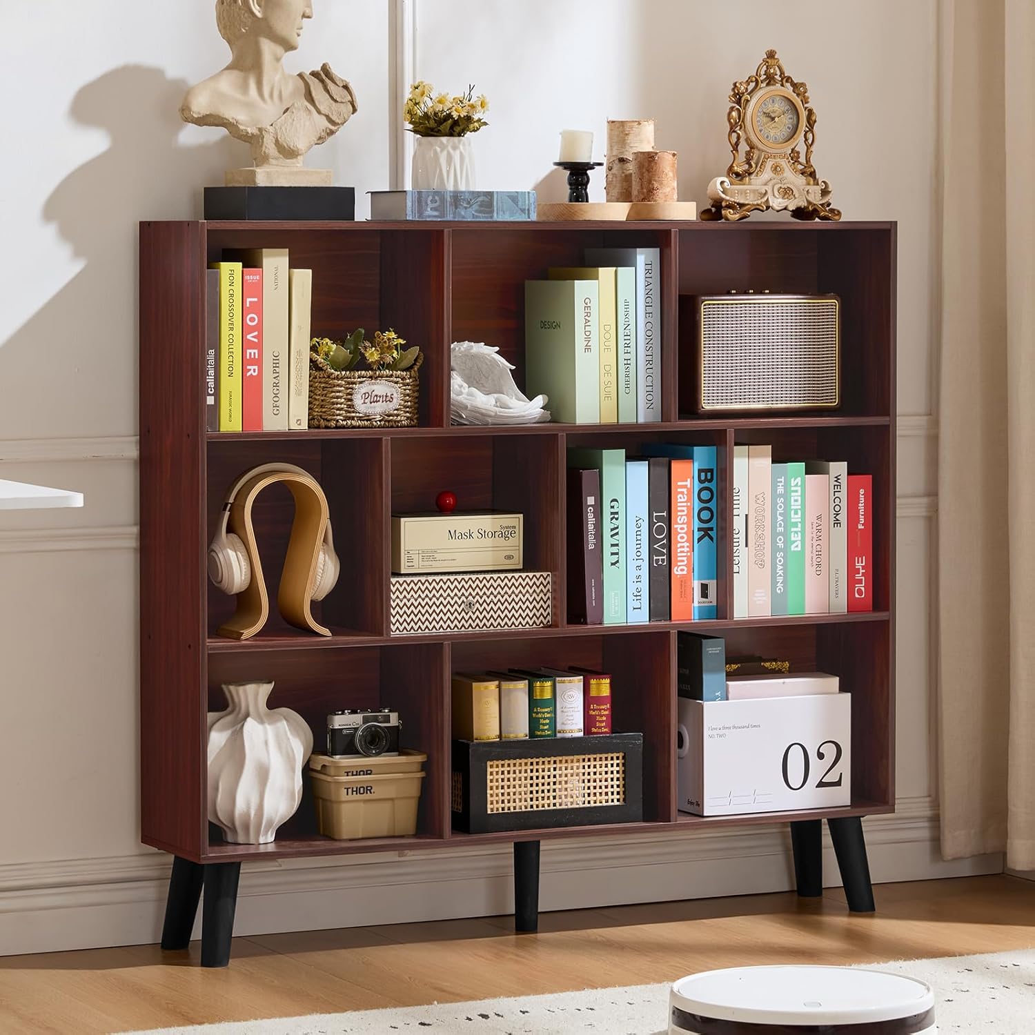 LEYAOYAO 5 Cube Bookshelf 3-Tier Bookcase with Legs,Mint Walnut Kids Book Shelf Cute Storage Organizer,Free Standing Open Toy Shelves Wood Bookshelves,Display Bookcases for Bedroom,Living Room,Nursery