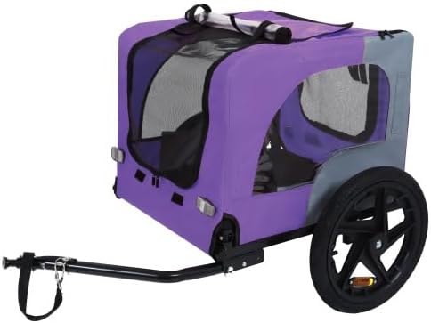 Product Features: Enhanced Safety & Secure Design: A built-in safety belt anchors your pet snugly to prevent escapes, while a crash-resistant guard and high-visibility safety flag add extra protection. Reflective strips along both sides boost nighttime visibility, ensuring you and your pet stay seen during dusk or dawn rides. Roomy & Comfortable Interior: Designed for small to medium pets, the cabin offers ample space (23.62” L x 17.71” W) for superior comfort. A rear zippered door simplifies hassle-free entry and exit, letting your pet hop in and out with ease. All-Weather Protection & Ventilation: Equipped with a waterproof front curtain to block rain and wind, paired with fine mesh side panels that keep insects out while promoting airflow. Your pet stays dry, cool, and engaged with the surroundings—no compromises on comfort or safety. Ultra-Portable & Compact Storage: Disassemble wheels in seconds and fold the trailer into a slim, lightweight profile. Stores effortlessly in car trunks, closets, or tight spaces—ideal for road trips, vacations, or daily adventures. Universal Bike Compatibility: Works seamlessly with 20”-29” adult bikes using the included universal coupler. Effortlessly attach or detach the trailer for spontaneous rides or storage-no specialized tools required. Product Dimensions Assembled Length (inches): 42.52 Assembled Width (inches): 31.50 Assembled Height (inches): 27.56 Product Weight (lbs): 22.00 Packaging Dimensions Length (inches): 23.60 Width (inches): 6.70 Height (inches): 25.20 Weight (lbs): 23.10