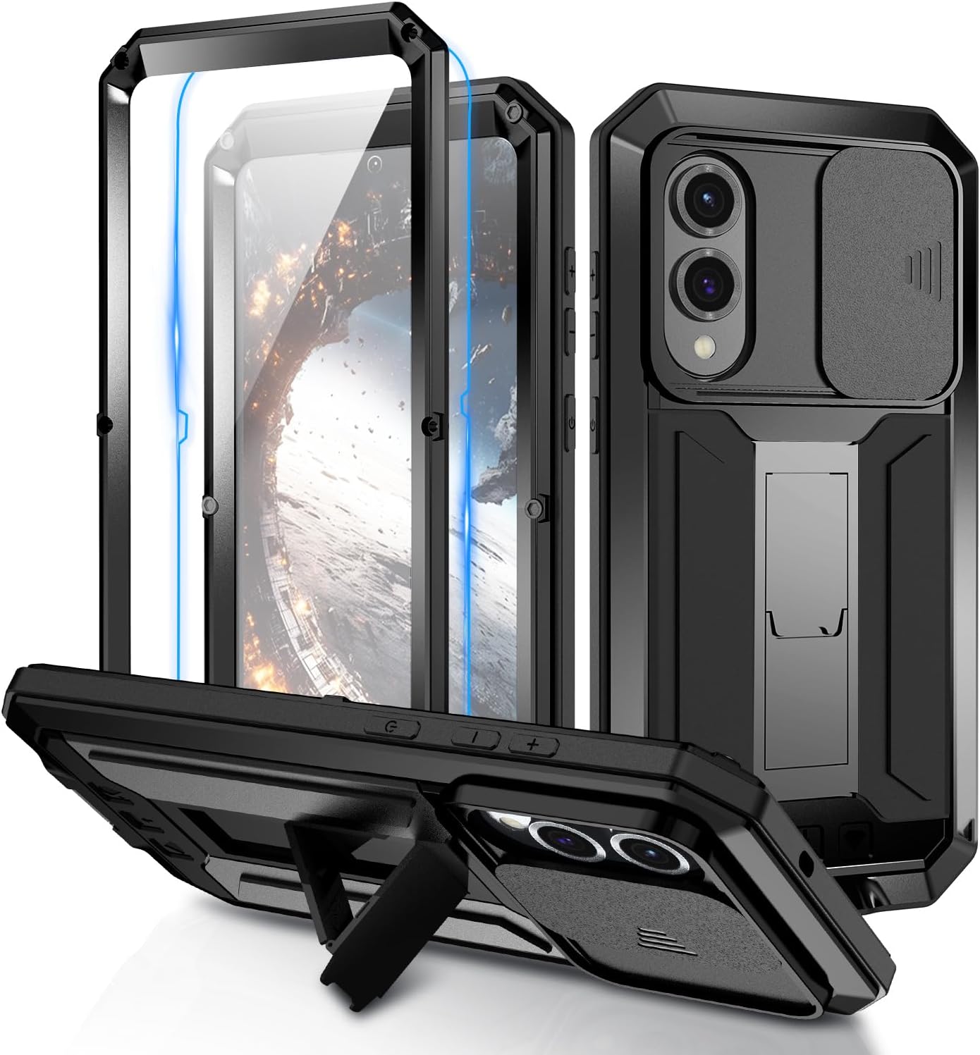 | Additional Features | Built-in Screen Protector, Camera Protection, Heavy Duty Protection, Kickstand, Military Grade Protector |
