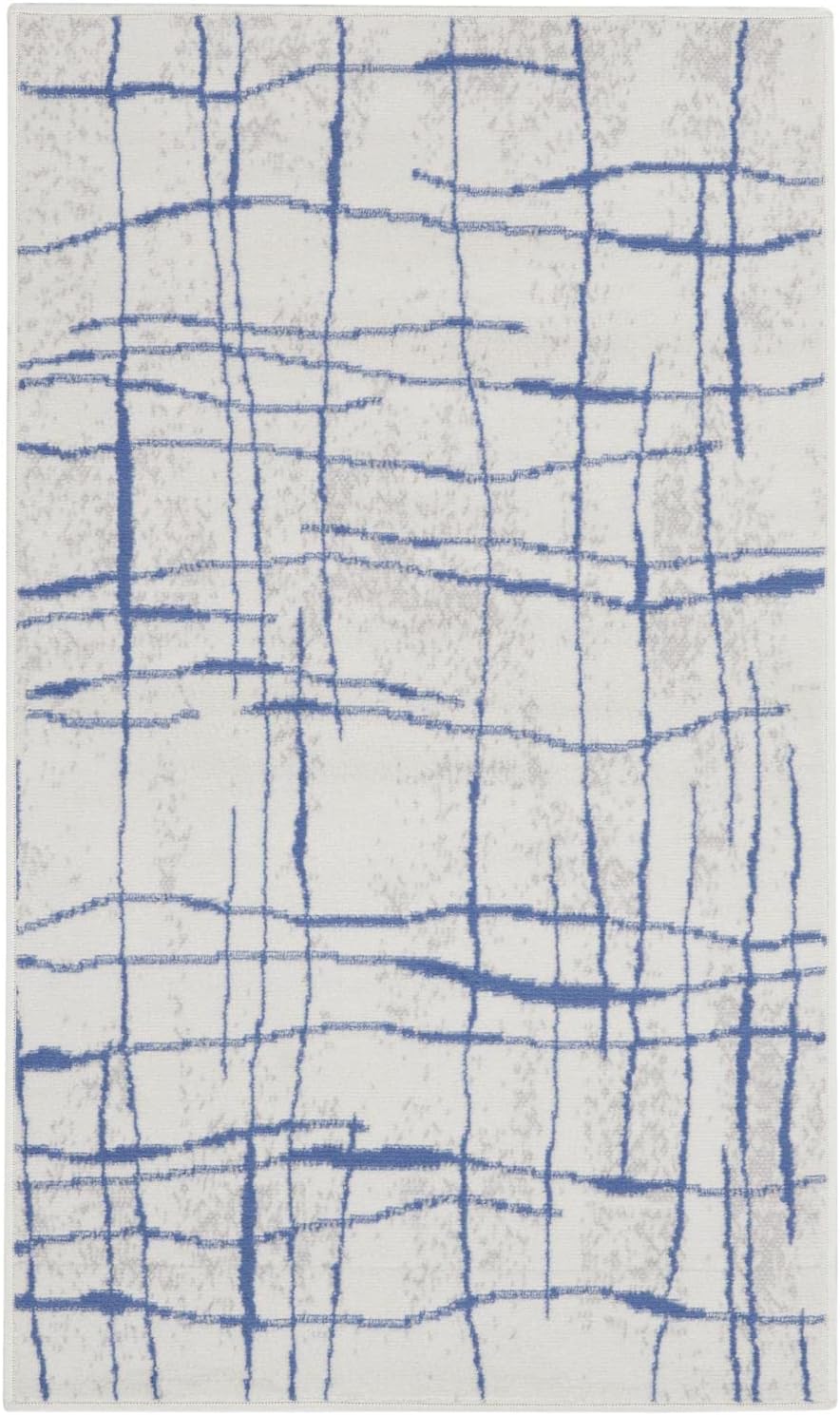 Nourison Home Whimsicle Ivory Blue 5' x Round Area Rug - Easy Clean, Non Shedding, Bed Room, Living Room, Dining Room, Kitchen (5' x Round)