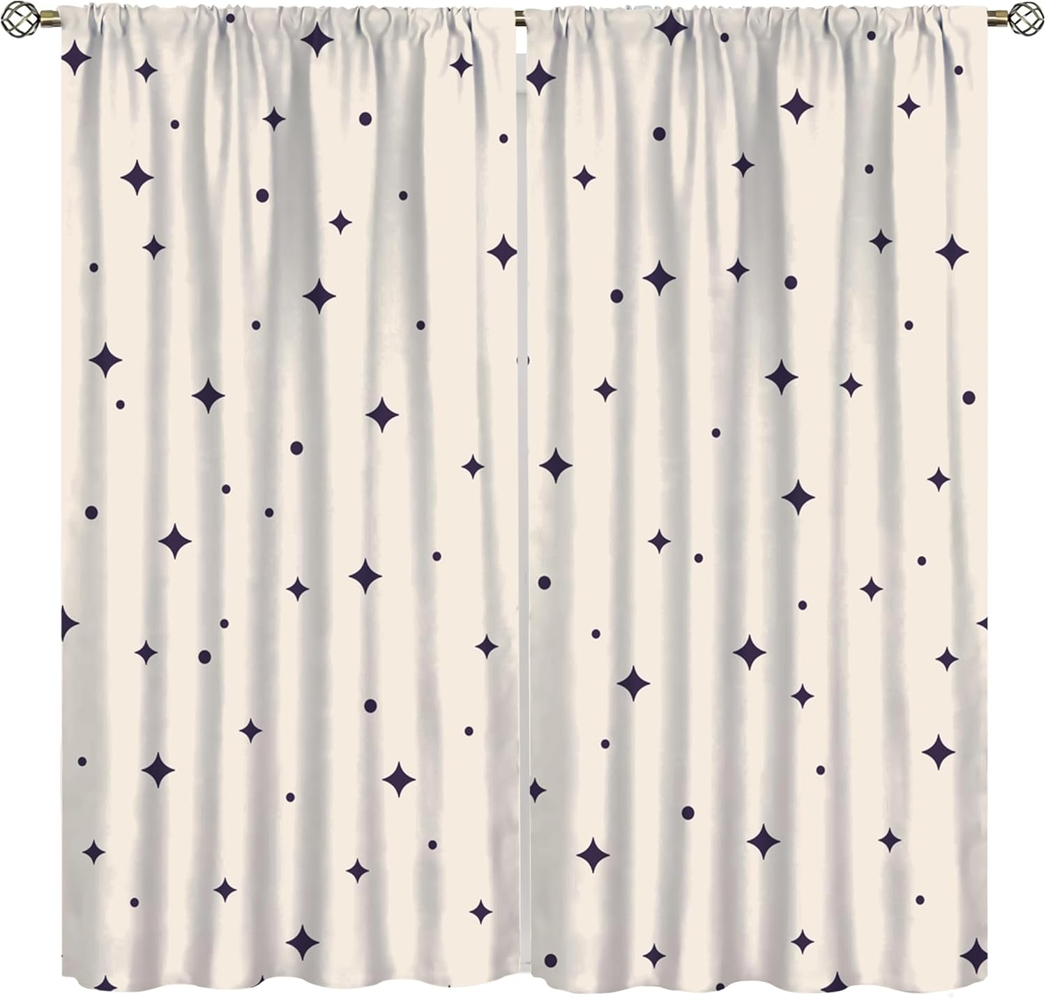 Star White Curtains - Cute Gold Star Moon Curtains Rod Pocket Foil Print Drapes for Kids Room Playroom Bedroom Living Room 55x63in