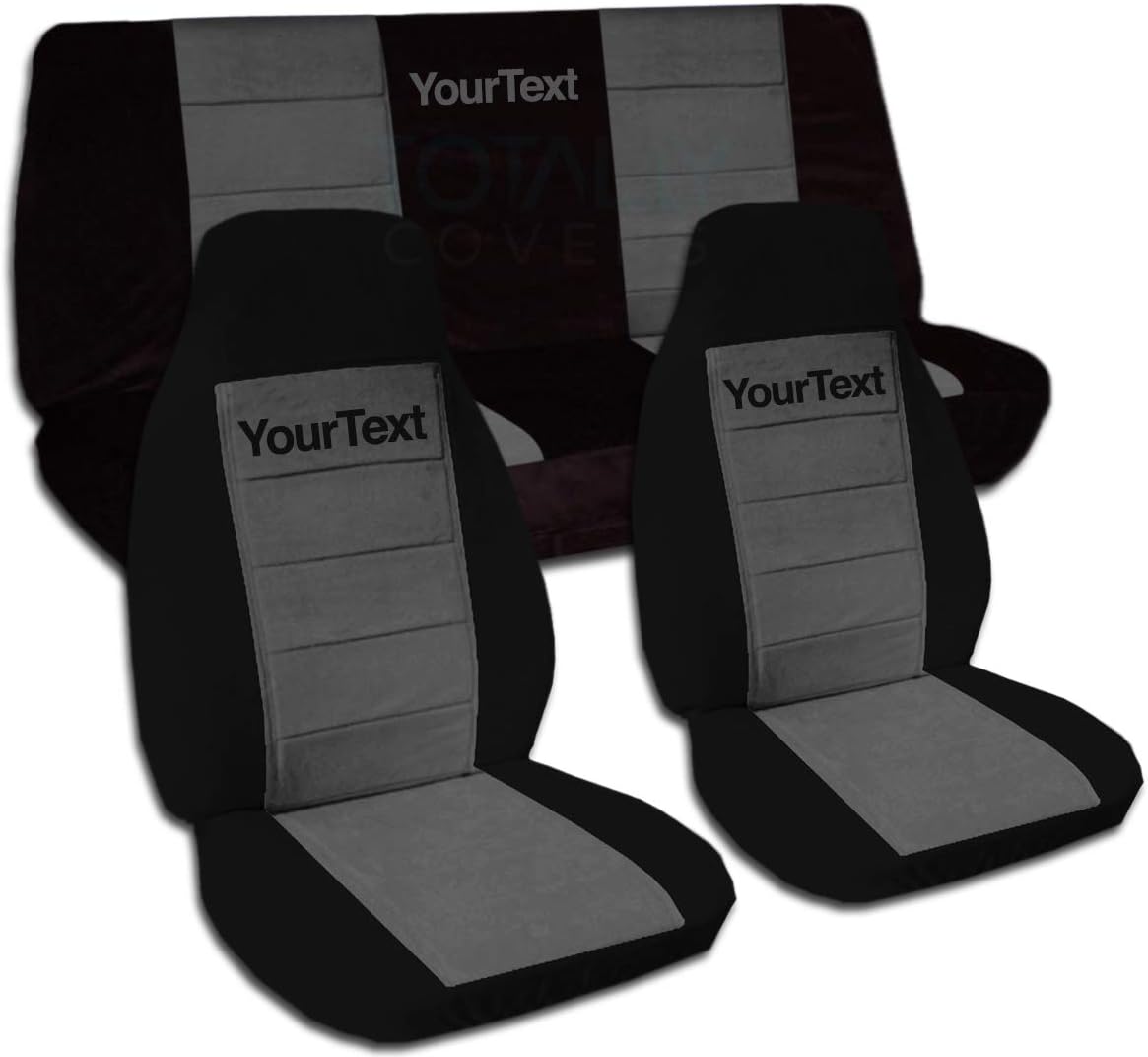 A full set of front and rear, black and brown seat covers for a 1987 to 1995 Jeep Wrangler YJ with your name/text on them! Be sure to visit our storefront ("Totally Covers") where you can find the largest selection of seat covers, to satisfy even the most demanding of tastes. If you can't find what you are looking for, please contact us ("Totally Covers") We can make seat covers for ANY car, truck, van, RV or SUV in a variety of 145 colors and prints, and even add your name/text and logo/design on them!