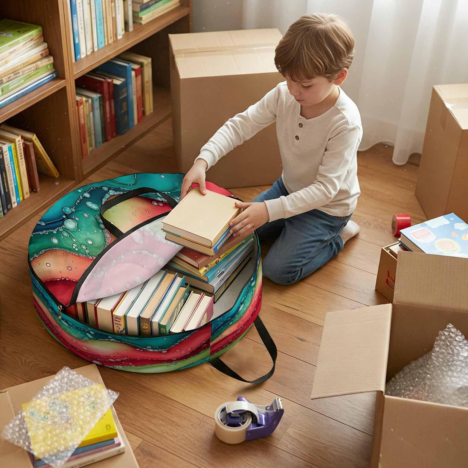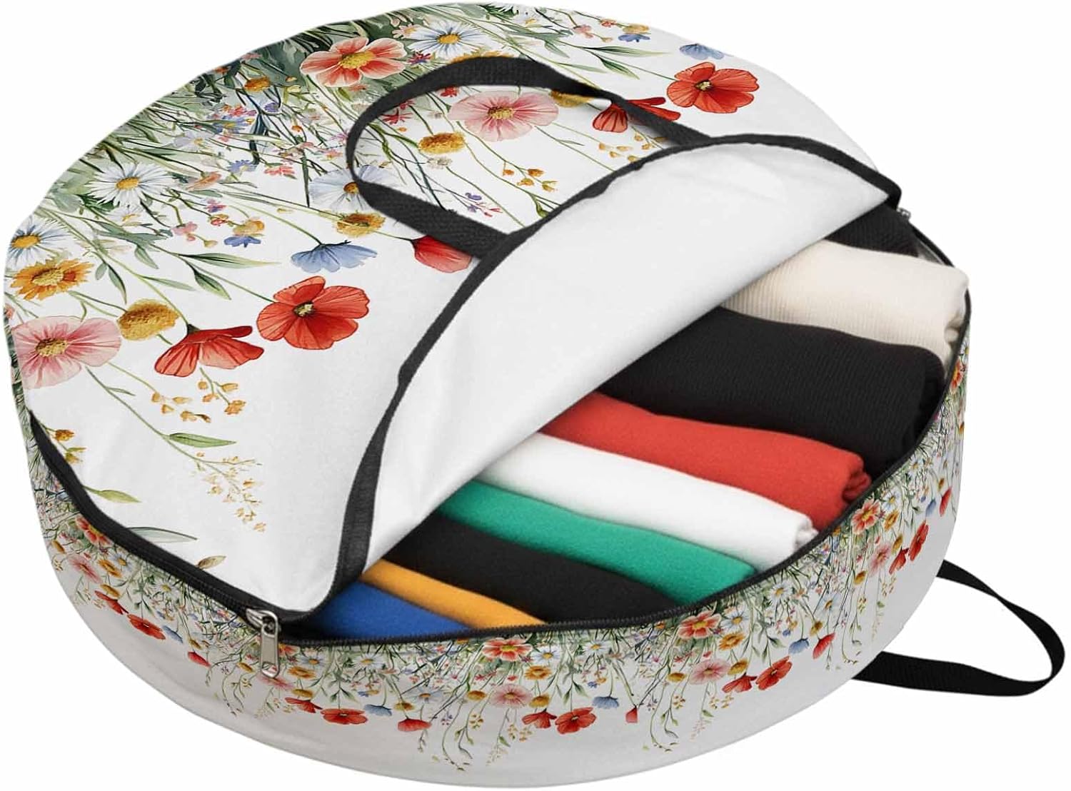 Reclaim Your Closet Space with the Round Storage Solution! Material: polyester Diameters: 24 inch, 30 inch, 36 inch Depth: 7 inches Package Includes: Round Storage Bag One Bag, Endless Possibilities: Whether you are swapping out your summer wardrobe, moving into a new dorm, or packing away holiday decorations, this bag has you covered. The circular design is uniquely suited for: Bedding: Comforters, quilts, sheet sets, and oversized pillows. Clothing: Winter coats, sweaters, and bulky ski gear. Home Decor: Holiday wreaths, garlands, and floral arrangements. Outdoor Gear: Camping blankets, sleeping bags, and beach towels. Dual Zippers: The high quality double zipper design allows the closet organizer to open wide from both sides, making it effortless to load and unload even the bulkiest comforters or wreaths. Reinforced Handles: Sturdy, reinforced handles are securely stitched to provide extra strength and a comfortable grip when carrying heavy loads or pulling the bag from under a bed. Clear Label Pocket: A transparent built-in label holder allows you to quickly identify the contents of each bag without ever having to unzip it, keeping your storage perfectly organized.