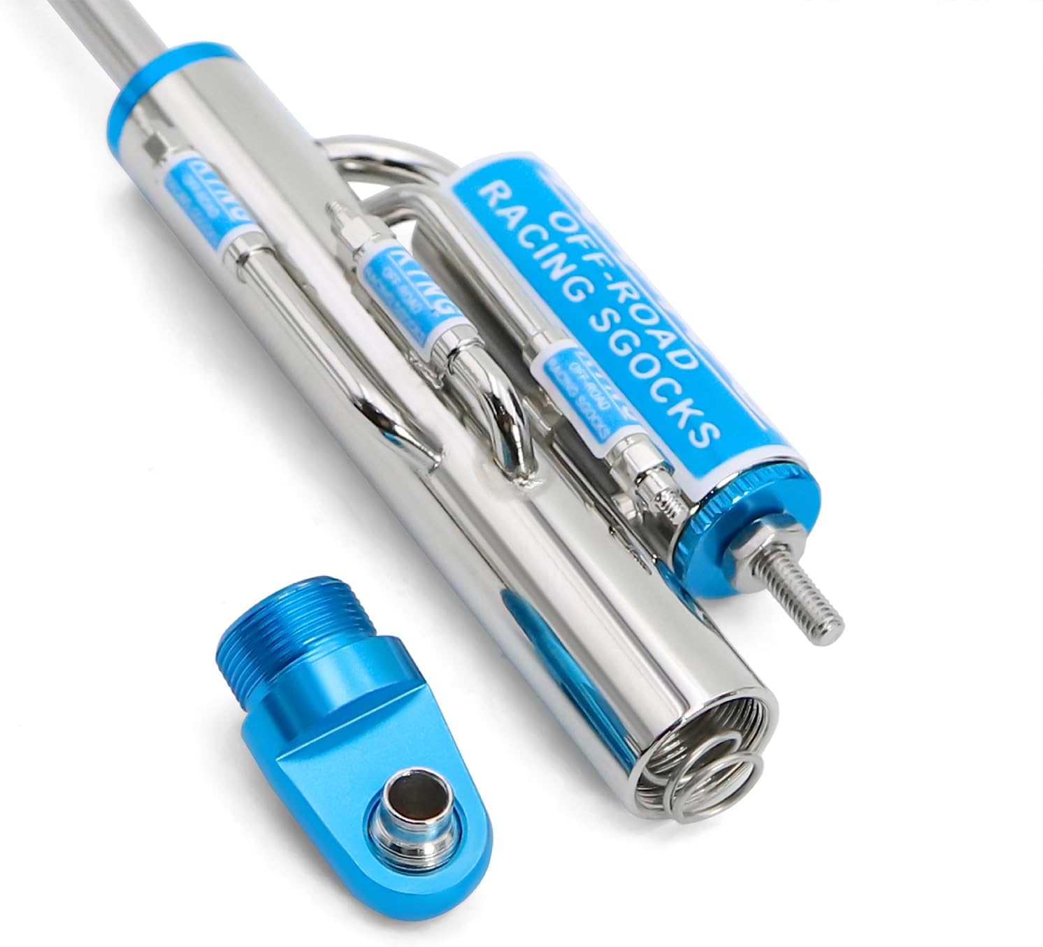 Specifications: Material:Aluminum Alloy(Rod End),Stainless Steel(Barrel Body) Color: Blue & Red Shock Body Diameter: 10.5mm Shaft Diameter: 4mm Rod End Diameter: 3mm Hole to Hole Length (Uncompressed):105/125mm Note: This is not a real shock absorber; it is merely a decorative component