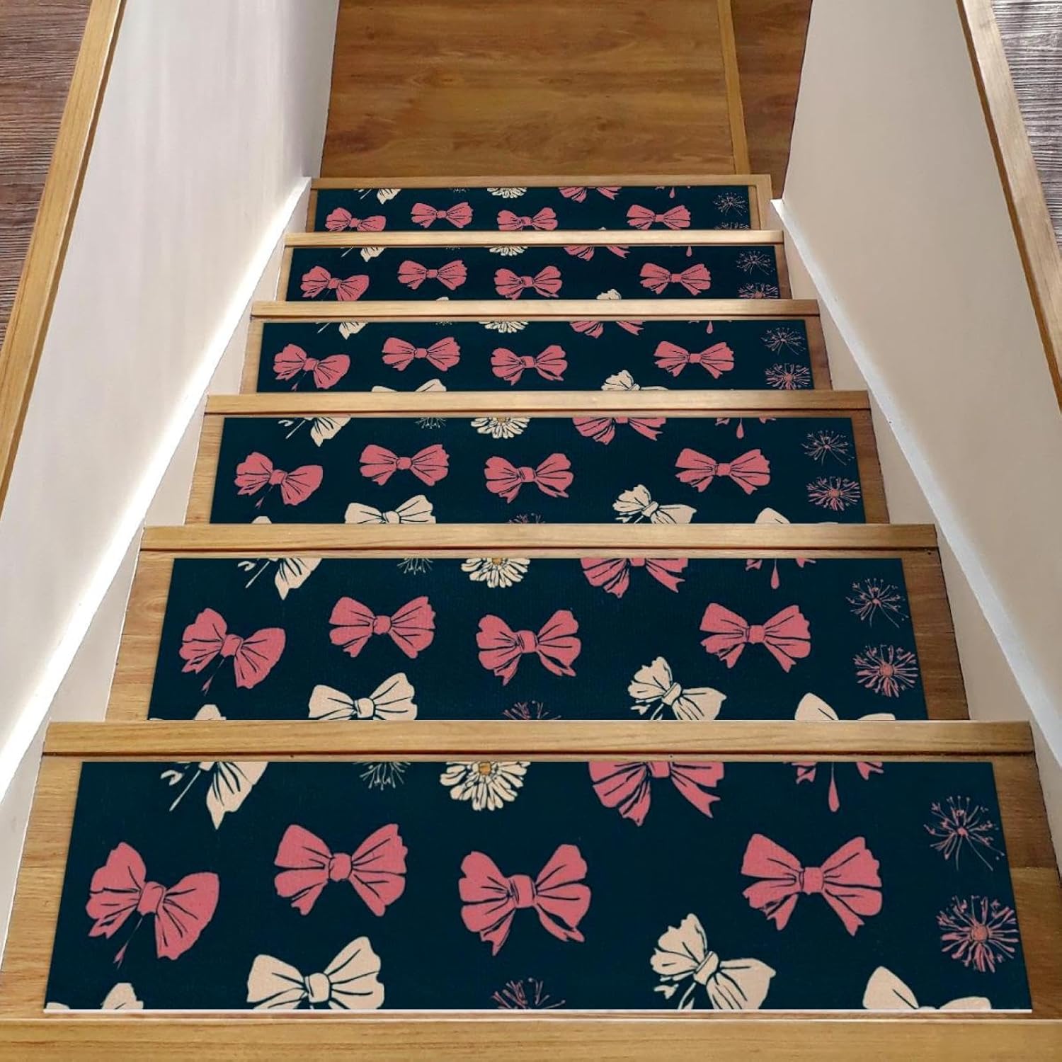 ・Size: 30 x 8 in / 76 x 20 cm, 5 mm thickness. ・Material: The polyester surface absorbs water, preventing stains on the floor. The TPE back is non-slip and water-resistant, preventing damage to the stairs. ・Package Contains: 15 pieces of 30x8in (about 76x20cm) stair mats, 5mm thick. Suitable for most needs. Each stairway treads rugs is individually wrapped. ・Easy to Clean: Vacuum, hand wash or machine wash. The stair runners for wooden steps can be machine washed, preferably hand washed, or vacuumed. Do not use bleach or tumble dry at high temperatures, drying at appropriate low temperatures will give you a comfortable texture. ・Noise Reduction of Stair Treads: By adding our stair runner, not only can you protect your floors, but you can also significantly diminish the noise caused by walking up and down the stairs. Stair rugs can decorate your stairs, create a warm home atmosphere, you can enjoy a peaceful and quiet home environment without disturbances. ・Easy to Remove Adhesive Backing: When you want to replace the stair treads non slip, the adhesive backing easily removes without leaving residue on the steps. ・Holiday Design: Stair carpet treads are designed specifically for Christmas,Halloween, Thanksgiving Day features classic festival elements and vivid printing styles,creating beautiful and stunning visual effects for you. This holiday themed stair treads can easily help you add a strong festive atmosphere, bringing charming and exquisite holiday decorations.