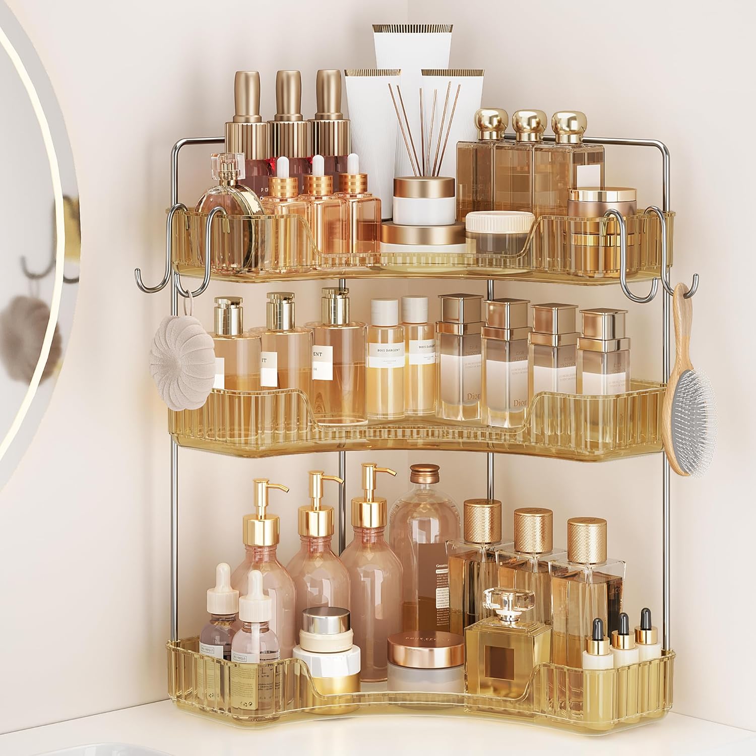 | Product Name | Corner Bathroom Organizer Countertop, Plastic Bathroom Counter Organizer, Vanity Tray Sink Shelf |