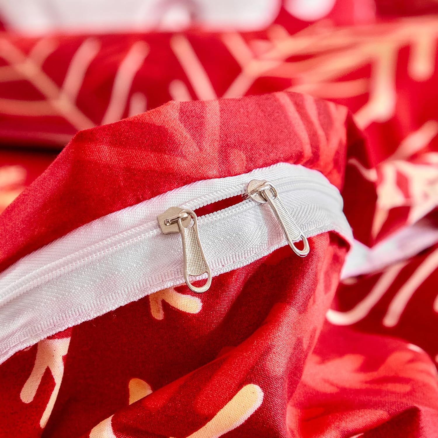 Christmas Red Duvet Cover Set Twin Size with Gradient Red White Golden Snowflakes Holiday Style 3pc Set (1 Duvet Cover + 2 Pillow Shams) for New Year Gift Decor Choice with Ties and Zipper