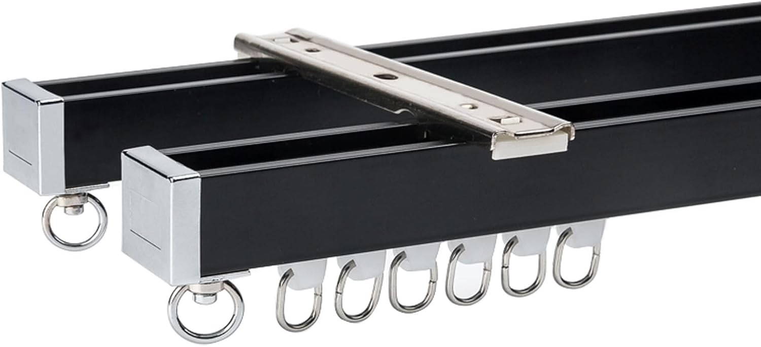 Ceiling mounted curtain double rails can be easily installed in living rooms, bathrooms, bedrooms, suspended ceilings, floor-to-ceiling windows, RVs, private spaces, hotels, hospitals, classrooms, changing rooms, or anywhere else. Suitable for any theme in any environmentFour colors of curtain track are all fashionable, which can be seamlessly integrated into any decoration style. They are simple yet luxurious, highlighting a modern fashion styleFeaturesSilent pulley, silent and smoothQuiet, long-lasting and compactStable and easy to cleanEasy to installSpecificationName: Heavy-duty square railType: Straight railColor: Blue, Glod, White, BlackMaterials: Aluminum alloySeal: Alloy MaterialsInstallation method: Ceiling mount, Side mountPacking list:Number of pulleys: 8/mSuspension method: Hook typeNumber of seals: 2/kitDue to transportation reasons: curtain rods longer than shipping restrictions will be shipped in sections and equipped with connectors, which will not affect normal use after installation