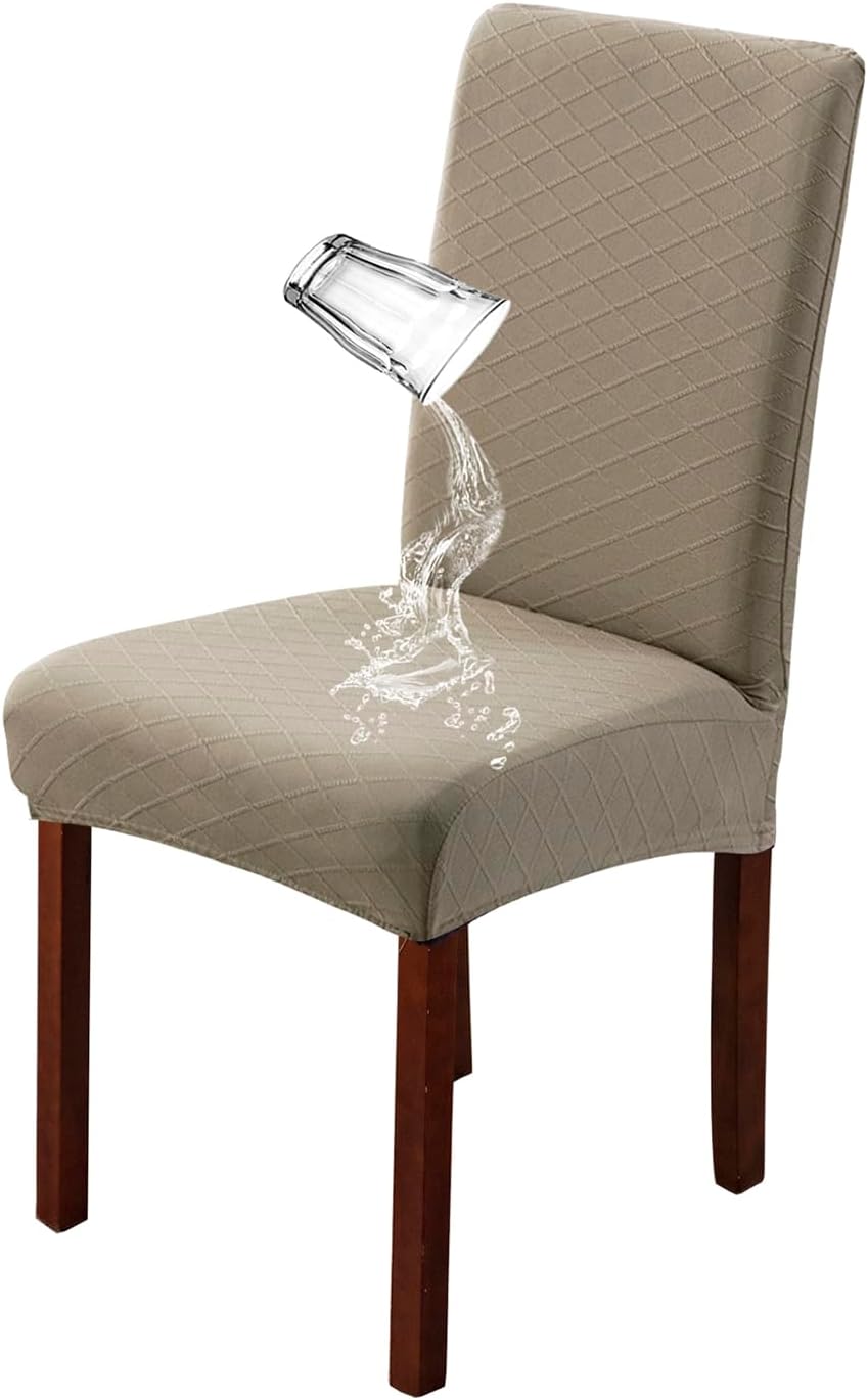 Features:The chair cover is made of High Quality Fabric, soft and Comfortable to the touch, with good breathability and wear resistance, ensuring that you sit comFortably and feel at ease.The chair cover is designed with classic lattice, which not only adds a touch of fashion and elegance to your home space, but also gives your chair a New Look and makes it the focal point of your home.The waterproof chair cover is available in a wide range of colours, which can be easily matched with a variety of home styles, making your home space more personalized.Whether placed in the living room, bedroom or study, the chair cover can blend Perfectly with the surrounding furniture and decorations, showing a unique artistic charm.The dining room chair covers with elastic sewn at the bottom are easy to install and fit tightly to the chairs, they can be easily put on and stay in place. Size: Seat back height : 18-24 inches (46-61cm) Seat length : 15-19 inches (38-48 cm) Seat width : 15-19 inches (38-48 cm) Cushion thickness: 1.5-4 inches (5-10 cm) To make sure the chair cover fits properly, please measure your chair Size beFore purchasing. Package Includes: 2/4/6 pieces chair covers Attention:It should be reminded that the chair covers are measured manually, there will be 0.5-1 inch error.Due to the different lighting and monitors, there is a slight difference in the colour, the exact colour is based on the real thing.
