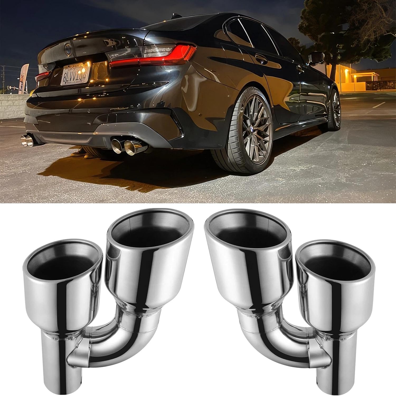 Exhaust Tips, Universal Dual Tail Pipe 2.5" Inlet Muffler Tip Compatible with Infiniti G37 BMW 335i Honda Accord Toyota Camry Nissan Altima Ford Mustang GT Chevrolet Camaro SS Chrysler 300