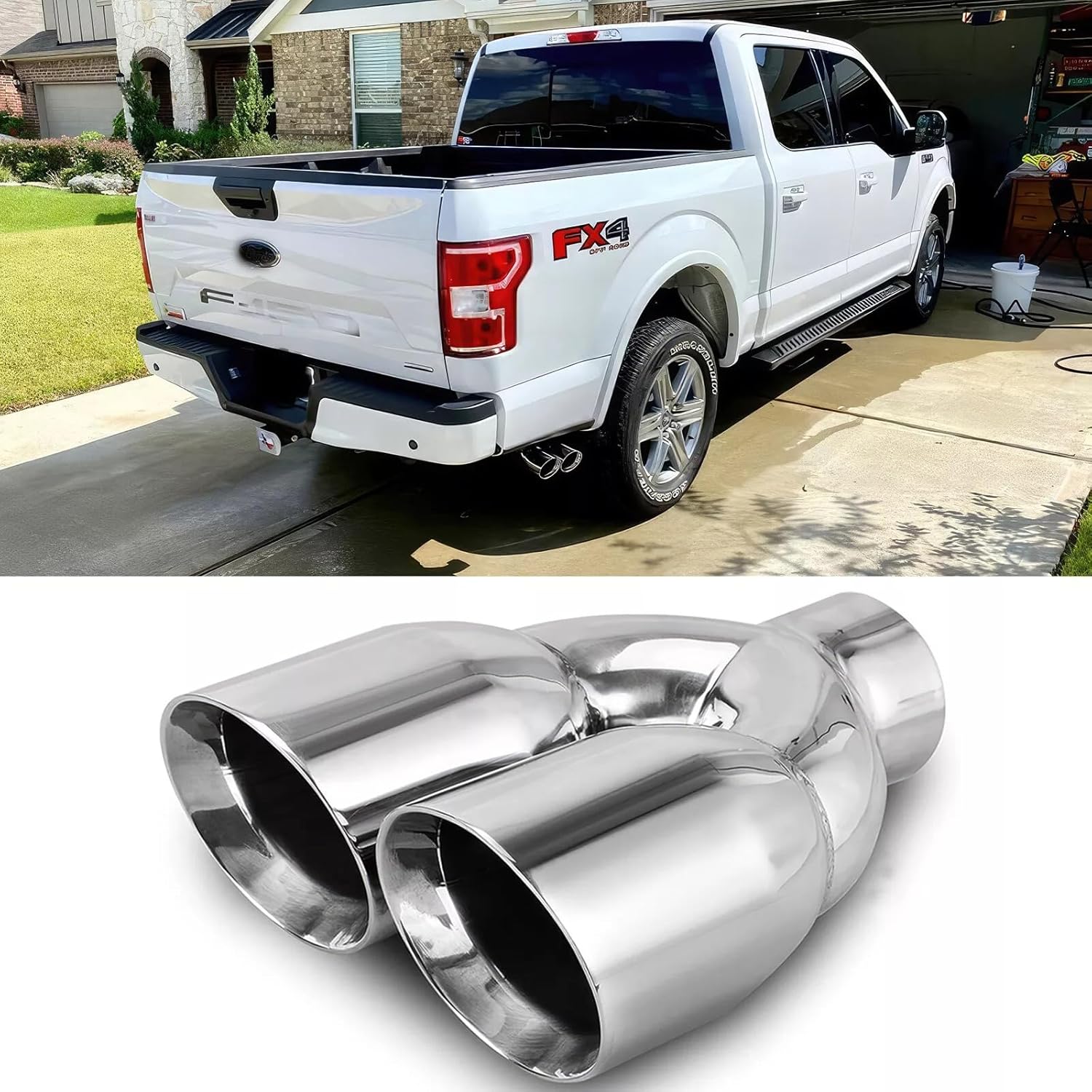 • 𝟐.𝟓 𝐈𝐧𝐜𝐡 𝐄𝐱𝐡𝐚𝐮𝐬𝐭 𝐓𝐢𝐩 - DREAMOTOR truck exhaust tips exhaust pipe is made of premium stainless steel mirror polished, effectively anti-corrosive, avoid rust and deformation for enhanced durability. It also helps protect the original tips from exposure to the conditions, such as sun and rain, and avoids rusting and deformation.