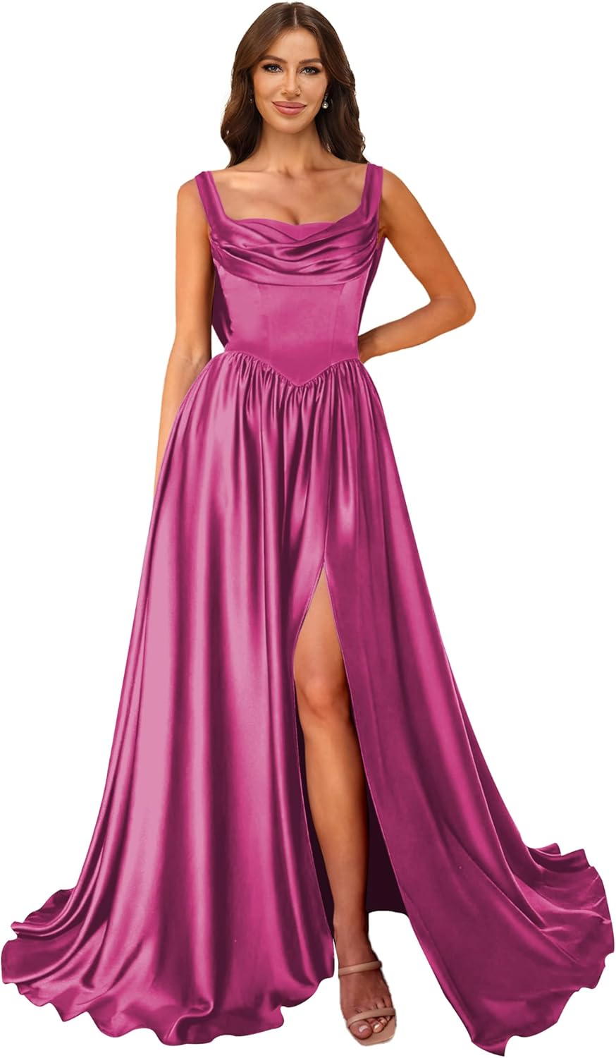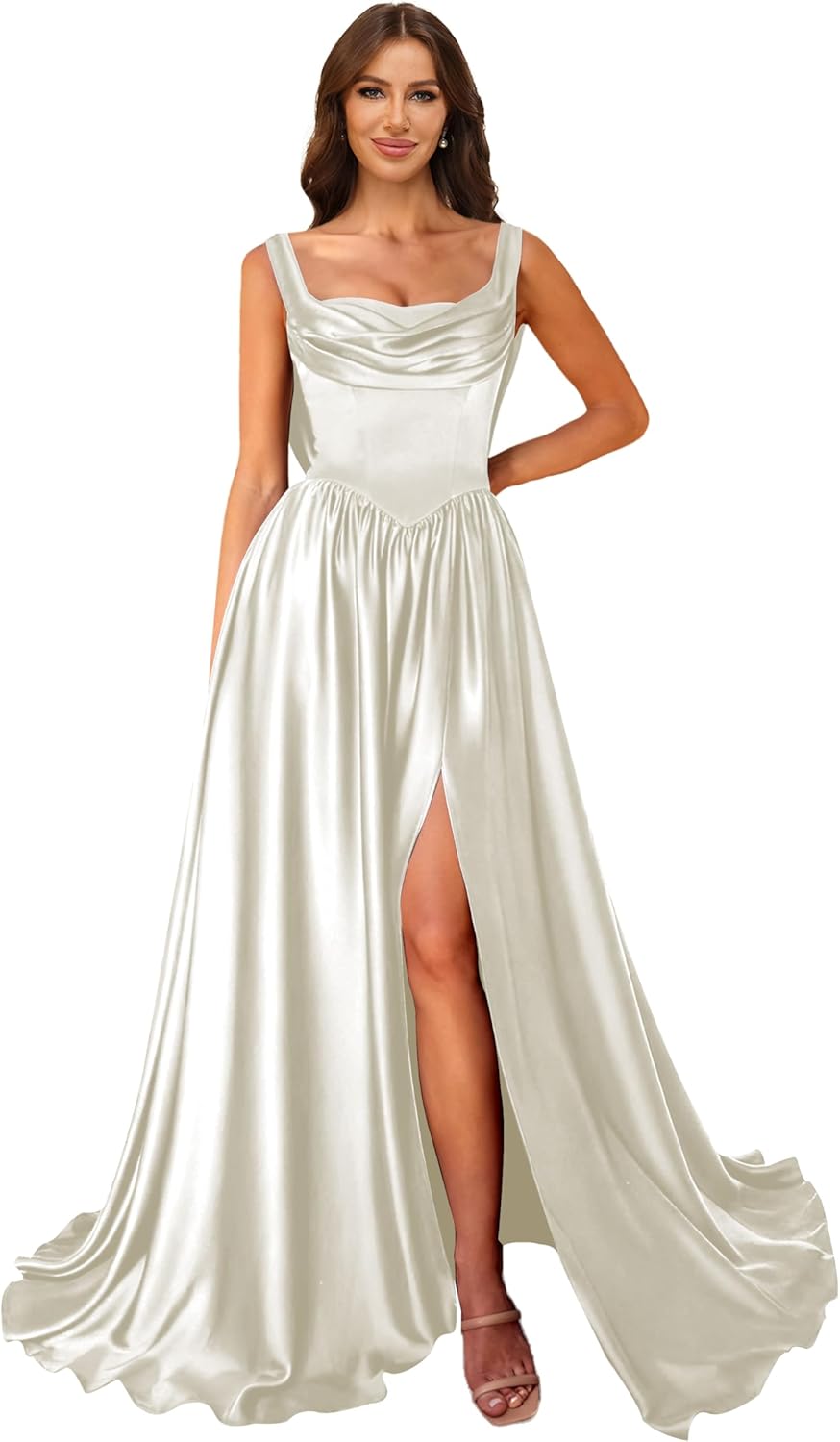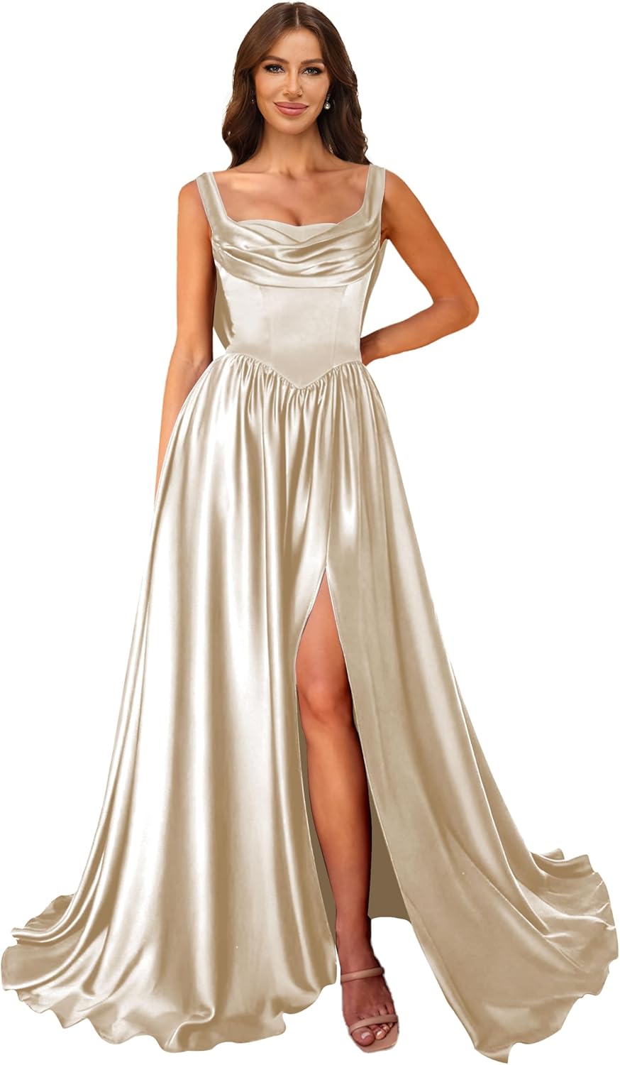 | Embellishment Feature | a line, corset, cowl neck, satin, silk |