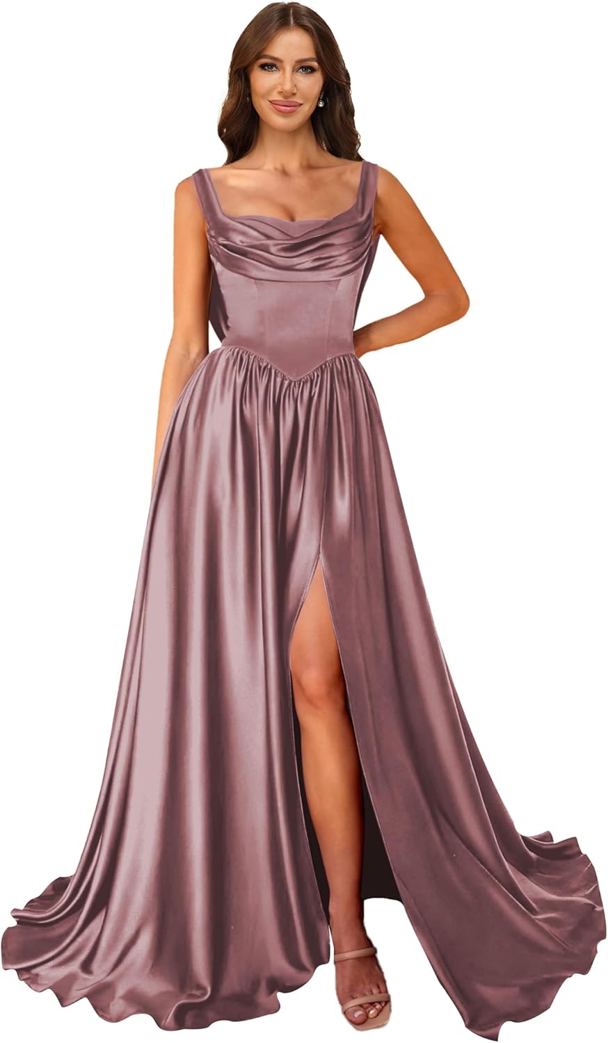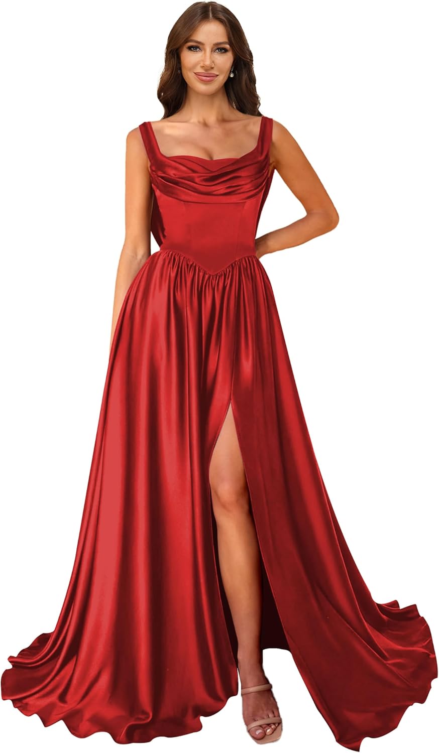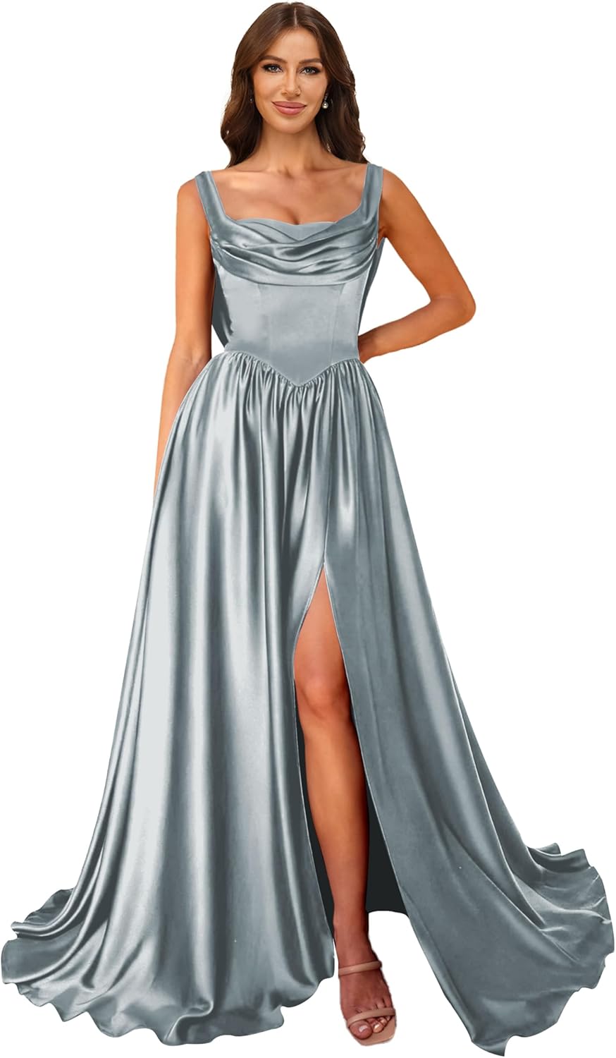 | Embellishment Feature | a line, corset, cowl neck, satin, silk |