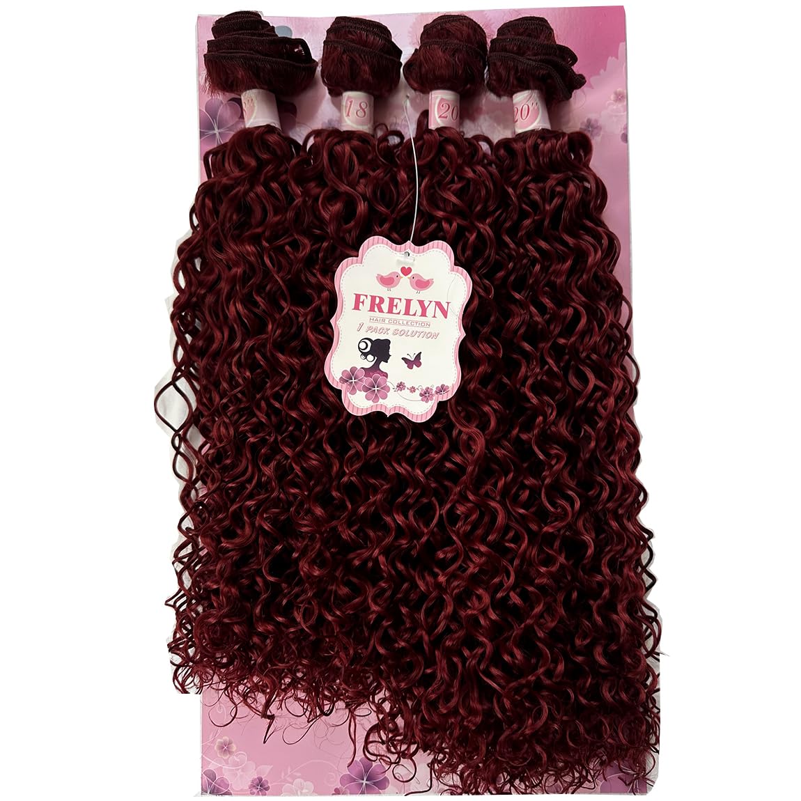 FRELYN Kinky Curly Synthetic Hair Bundles Quick Weave Hair Bundles Sew in Extension Two Tone Ombre Black Fade to Burgundy 4 Bundles/Pack Very Soft Natural Looking 18 18 20 20 Inches