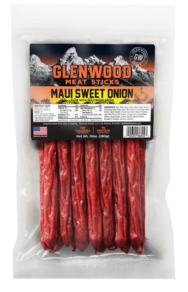 Glenwood Meat Sticks High Protein Meat Sticks are a delicious and convenient snack packed with protein. Perfect for on-the-go snacking, hiking trips, or a quick protein boost, these meat sticks come in a resealable 10-ounce bag, making them easy to take anywhere. Enjoy the rich, meaty taste and the convenience of these protein-packed meat sticks from Glenwood.