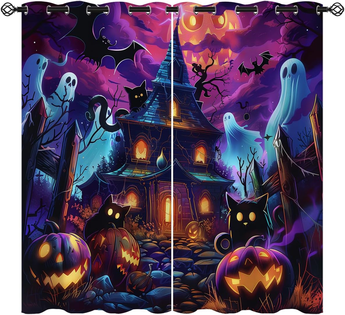 These print curtains are perfect for Living room, bedroom, kids room, kitchen, yard, patio, parlor, sliding door with Halloween,Pumpkin Spider Web Orange Party Christmas pattern.- Unique design:· Save energy costs by insulating against heat and cold.· Reduce noises from busy streets and high-traffic areas.· Protect furniture from sun damage and fading.· Provides complete privacy when needed· Perfect for any bedroom, office kids room and living room.- Package Included:· Blackout window curtains 2 Pcs set ( two panels).- Material:· Our Blackout Curtain Liners are crafted from a durable soft and thick triple weaved blackout fabric which can block out sunlight and UV rays. The darker color of the fabric, the more light it can block.- Easy Care Instructions:· Machine washable in cold water· Do not bleach.· tumble dry on low· low temperature ironing- Notes:· For your curtains to be more perfect, please choose a size 5-10 Inch larger than the actual window width.· here may be slight differences in colors on different displays. If you have any questions about the product, please feel free to contact us.