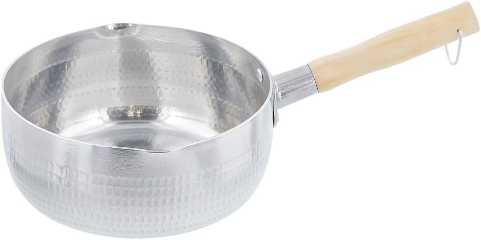 A snowflakes for gas fires with convenient portion markings and a spout on both sides. Convenient portion markings on the inside. Dual side spout for convenient pouring Hammered aluminum for superior strength