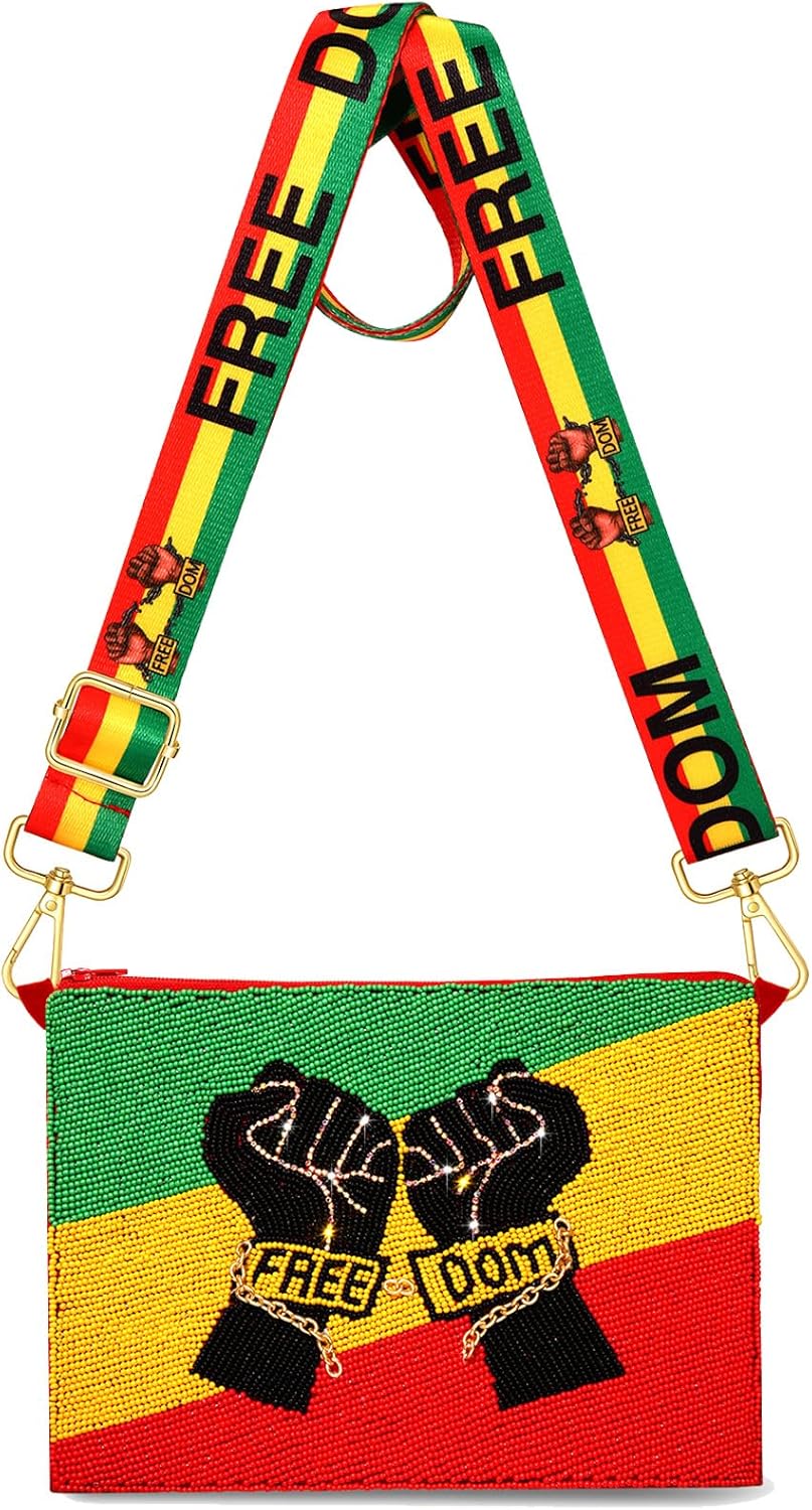 ♥ About CEALXHENY JEWELRY ♥ -- Your Reliable Choice of Fashion Jewelry. -- CEALXHENY JEWELRY is designed to “Accompany and Witness Every Special Moment in Your Life”. -- CEALXHENY JEWELRY is concentrate on providing stylish design, superb manufacturing process, high quality jewelry with first-class US native designers for many years. -- Although life is very long, the good times are fleeting. Let CEALXHENY accompany you and witness special moments in your life with happiness, peaceful and good luck always. ♥ Main Features ♥ Commemorate and celebrate Juneteenth in these Beaded African Purse for Black Women. Crafted with vibrant red, green, and yellow tiny beads—symbolizing the blood of ancestors, Africa’s fertile lands, and the sunlit promise of freedom. The raised fist emblem, echoes the Black Power movement’s unyielding resolve, while ‘AFRO’, ‘1865.6.19’ and ‘FREEDOM’ lettering honors Black heritage, history, culture and freedom. ♥ Specification ♥ ☛Material: Alloy, Beads, Polyester. ☛Color:Yellow, Red, Green, Black; ☛Occasion:Black History Month, Juneteenth celebrations, Black Themed Party, Parades, Memorial day, Independence Day, etc. ☛Package Includes: 1 x Juneteenth Purse. You can search or click on "CEALXHENY" to see our complete collection on Amazon. Enjoy your shopping in our store!