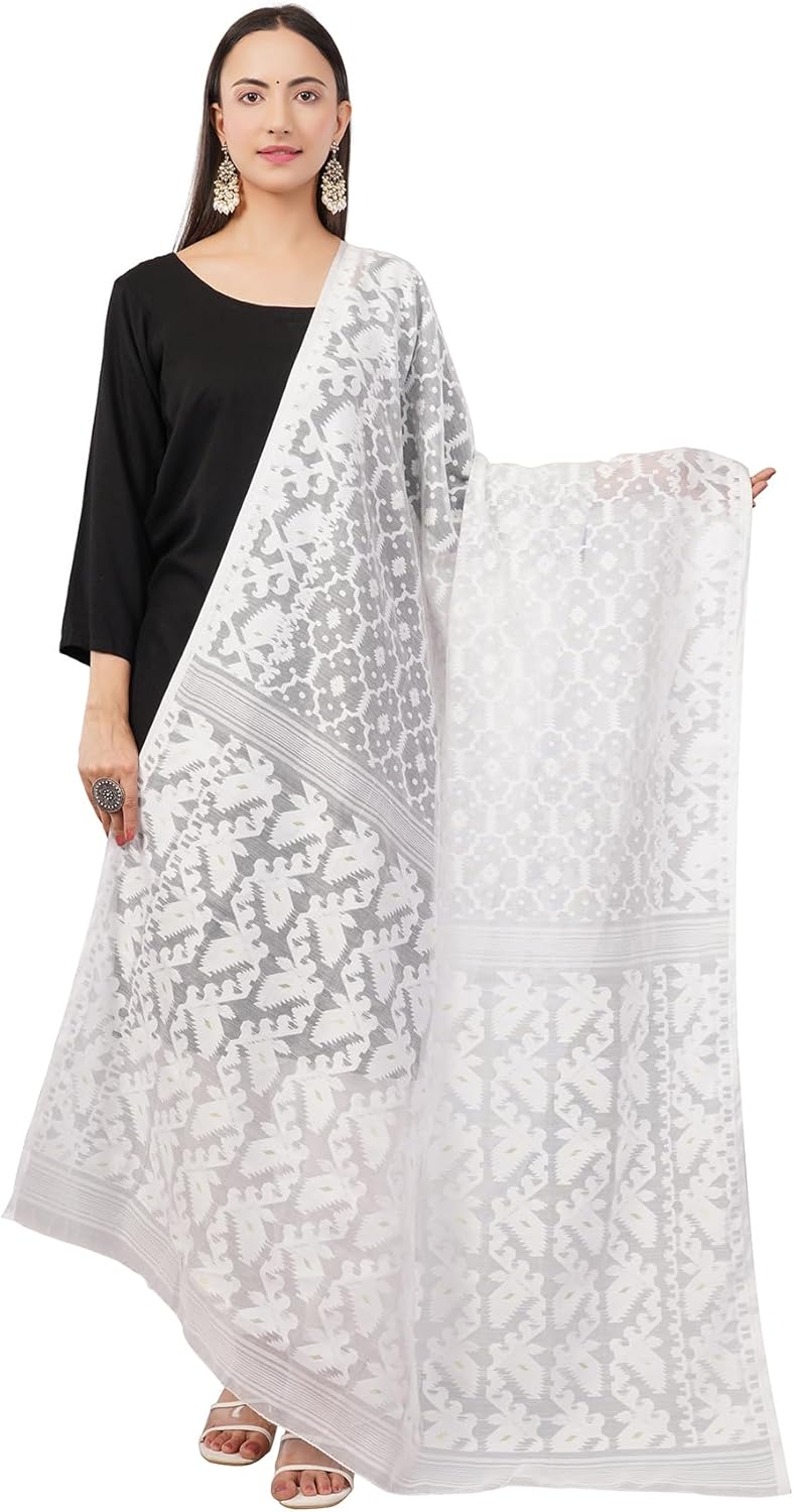 Elevate your ethnic wardrobe with this elegant Handwoven Jamdani Dupatta — a fine example of timeless artistry from Bengal. Crafted from soft, breathable cotton, this dupatta features intricate Jamdani motifs that appear to float on the fabric, thanks to a meticulous hand-weaving technique passed down through generations. Perfect to pair with kurtas, suits, or lehengas, this versatile dupatta adds a touch of traditional grace to any ensemble. Its lightweight texture makes it comfortable for day-long wear, while the fine detailing makes it a standout accessory for festive and cultural occasions. These Jamdani dupattas are handwoven (cutwork style). Each Jamdani dupatta is a labor of love — taking days to weave by skilled artisans. Its unmatched craftsmanship and cultural significance make it not just a garment, but a piece of wearable heritage.