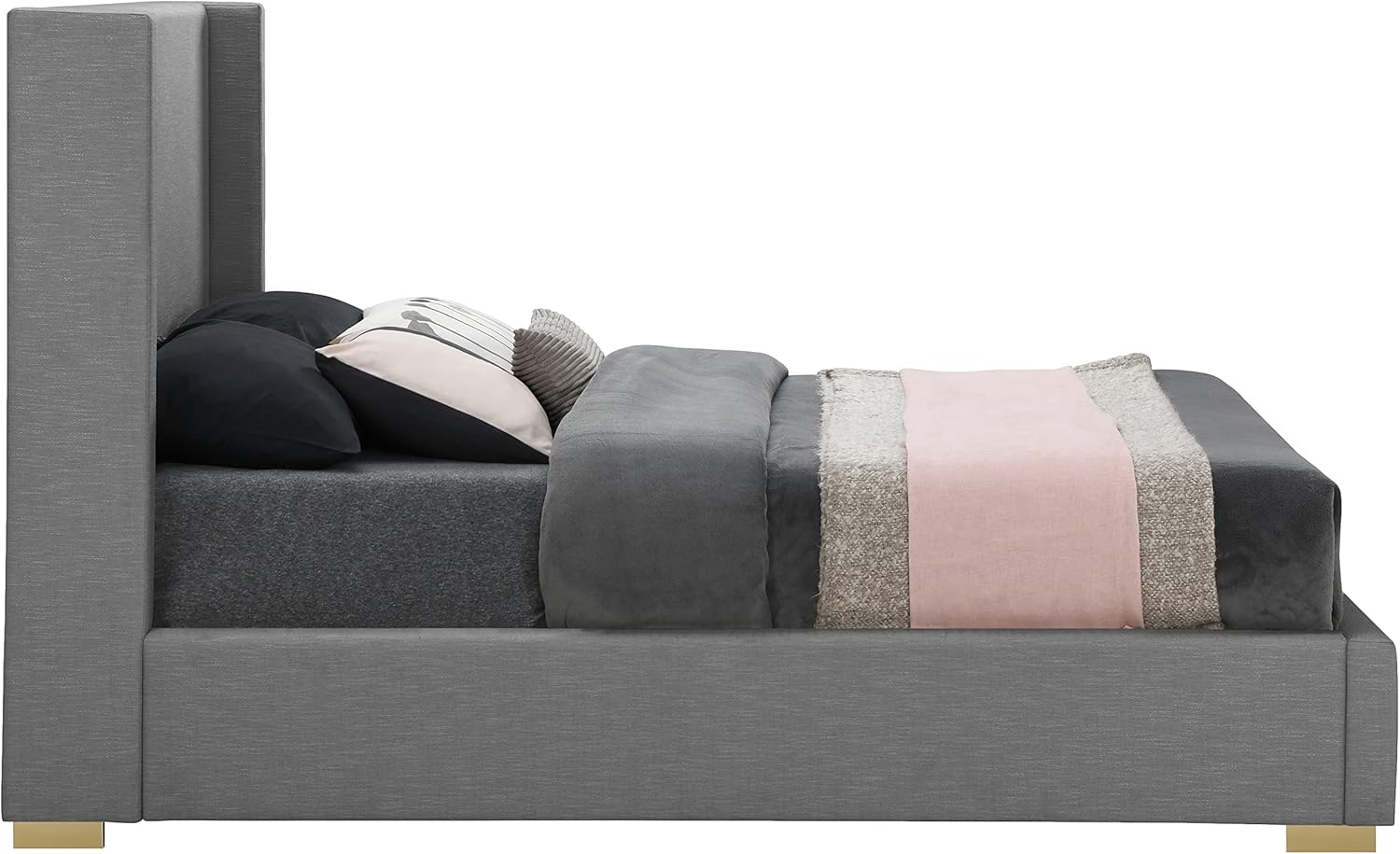 Make a big impression in the bedroom with this full-size Royce linen textured bed. A wingback headboard is the star of the show here, with its extra height adding an element of drama to this exceptionally crafted bed. The headboard, sides and footboard of this Royce bed are covered in rich grey linen textured fabric for a sleek yet chic touch. The bed comes with both gold and chrome legs to suit your style preferences.