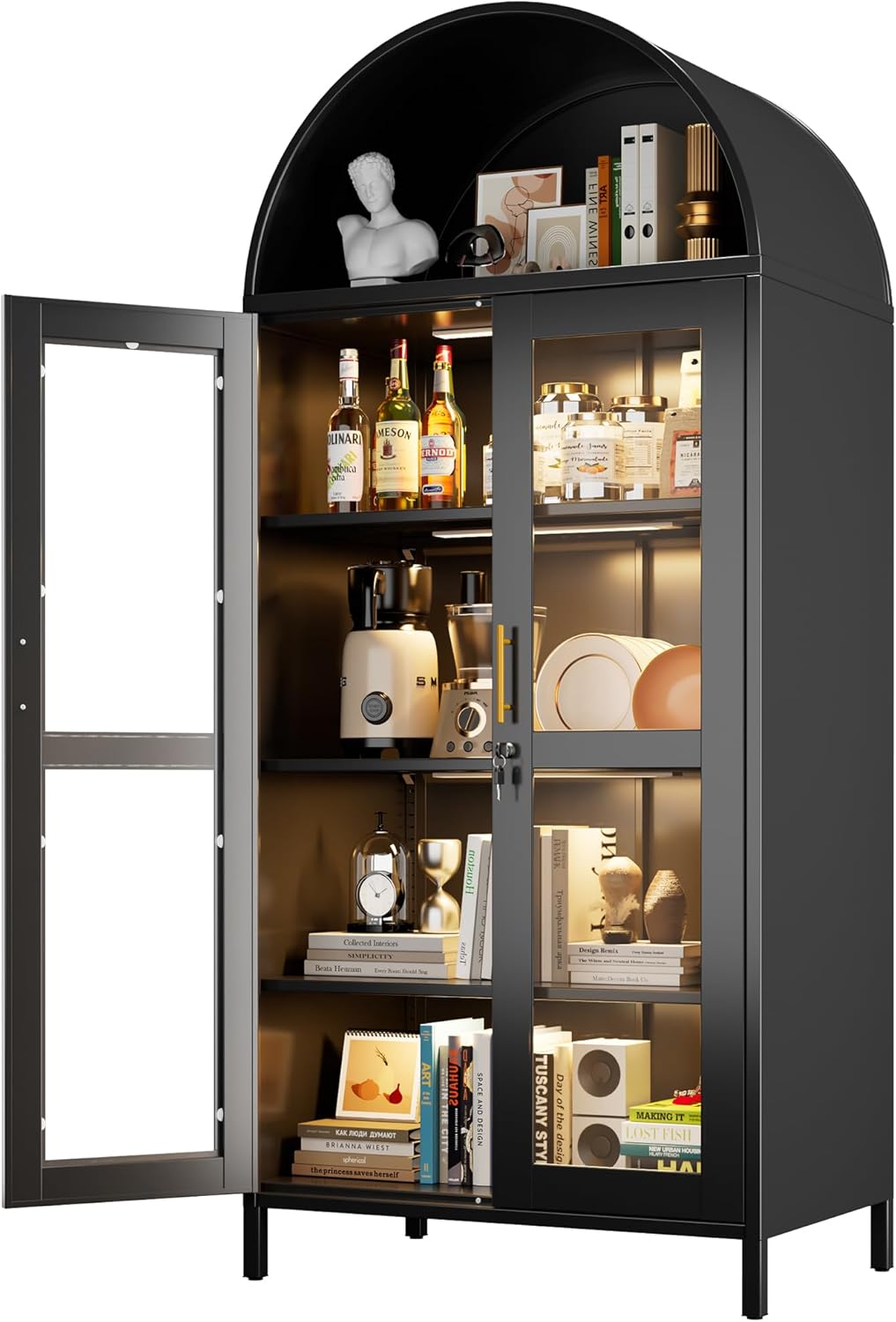 | Set Name | Arched Storage Cabinet Set with Glass Doors, Drawers, and Adjustable Shelves |