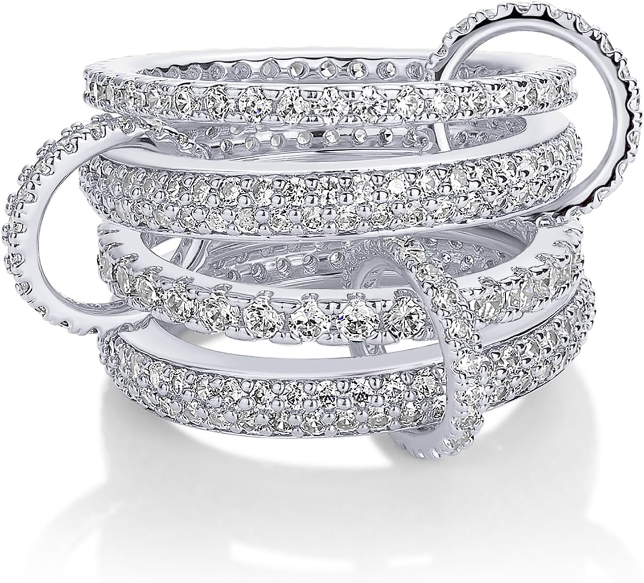 Shine bright with the PAVOI Rhodium Plated Pavé-Set Triple Band Ring, featuring interlocking links adorned with vibrant fuchsia cubic zirconia. A bold statement piece designed for effortless style and everyday elegance.