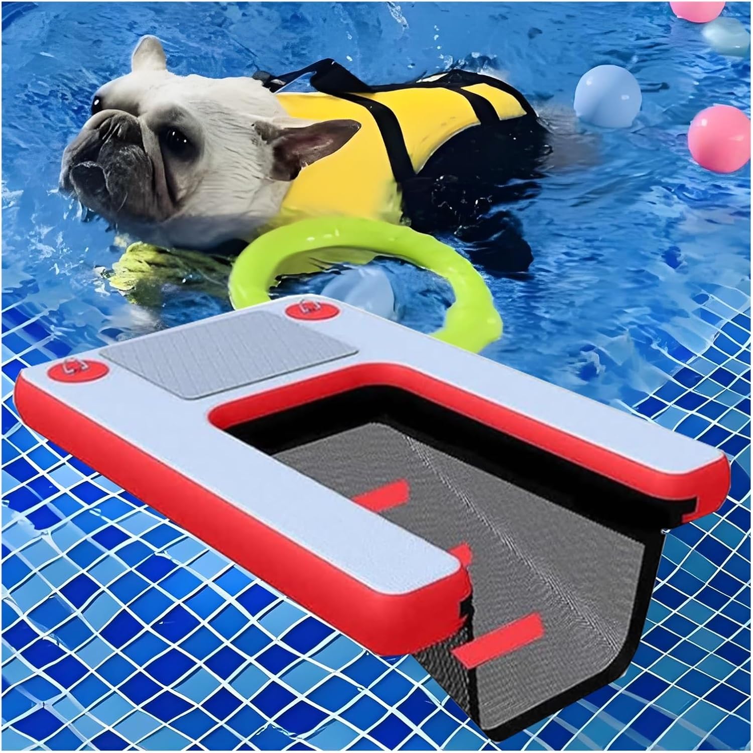Still worried about your dog's difficulty in getting to shore after playing in the water in the summerWith MZZKFC inflatable dog ramp, these are not a matterThe love you give to your dog is hidden in these small detailsWhether you are traveling or going to a friend's pool party, easy to carry, happy to goEvery time your dog plays in the water will become a good memoryHurry up and prepare for your babySpecification :Product Name: Inflatable Dog Climbing LadderMaterial: PVCSize: 59.1x39.4x3.9 in (Customizable)Color: Green/ Blue/ Yellow/ Red/ BlackWeight: 17.6 lbsLoad Capacity: 231 lbsFoldable or Not: YesAccessories: Pump/ Storage Bag/ String/ Repair KitFeatures:1. PVC material dog pool ramp, can withstand frequent use and paw scratching, long service life2. The dog float is equipped with EVA anti-skid pads to prevent slipping and falling and protect your dog from climbing3. Underwater weighted net, so that the dog water ramp is not easy to shake, shift or fall over in the water, so that your dog can climb more stable4. Curved corners to prevent your dog from getting hurt5. The inflatable dog ramp can be inflated and deflated quickly, and the compact size after storage makes it easy to carry around6. No need for complicated tools and professional skills, follow the instructions to easily complete the floating dock inflatable installation, can be quickly put into use7. The Dog Floating Ladder is suitable for swimming pools, lakes, rivers and other water environments, to meet the needs of dogs in various scenarios in and out of the water8. The surface of the dog boat ramp is smooth, easy to clean, stains, water stains, daily simple wipe to keep clean, low maintenance costsPackage Includes :1 x Dog Water Ramp