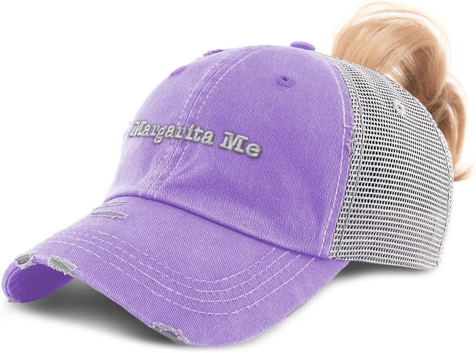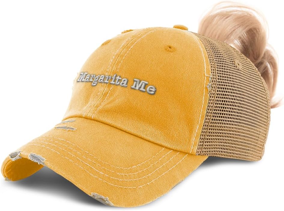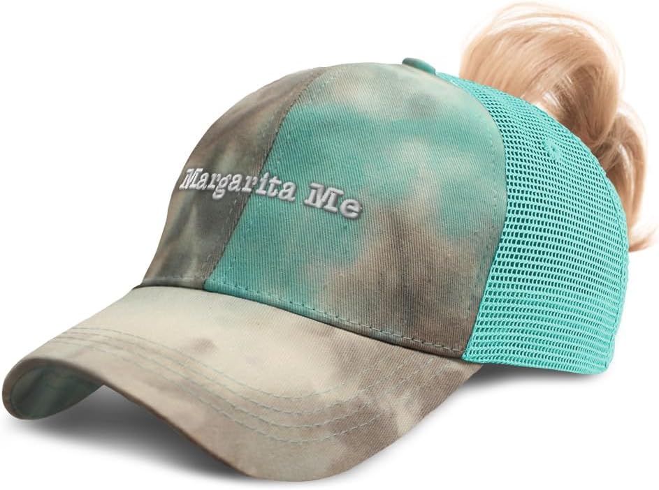 Elevate your look with our premium 6-panel ladies baseball cap—an embroidered female baseball cap that blends quality, comfort, and personality. Made from high-quality 100% cotton, this hat ponytail essential offers breathability and a long-lasting, stylish wear.Our “Margarita Me” high pony hat brings a playful, fresh twist to cute baseball caps, making it the perfect accessory for casual days or sunny getaways. The crisp, vibrant embroidery ensures your design pops, especially on trendy margarita hats for women and trucker hats women adore.Engineered for comfort, the ponytail baseball cap features a mid-profile fit, pre-curved bill, anti-sweat band, and a special hole in the back for your hair—secured with a reliable hook and loop closure. Whether you're out for brunch or gifting for birthdays, Mother’s Day, or Christmas, this baseball cap reflects your unique style.Choose this women's ponytail hat for a fun, fashionable way to top off your outfit—because every day is better with a little extra flavor.