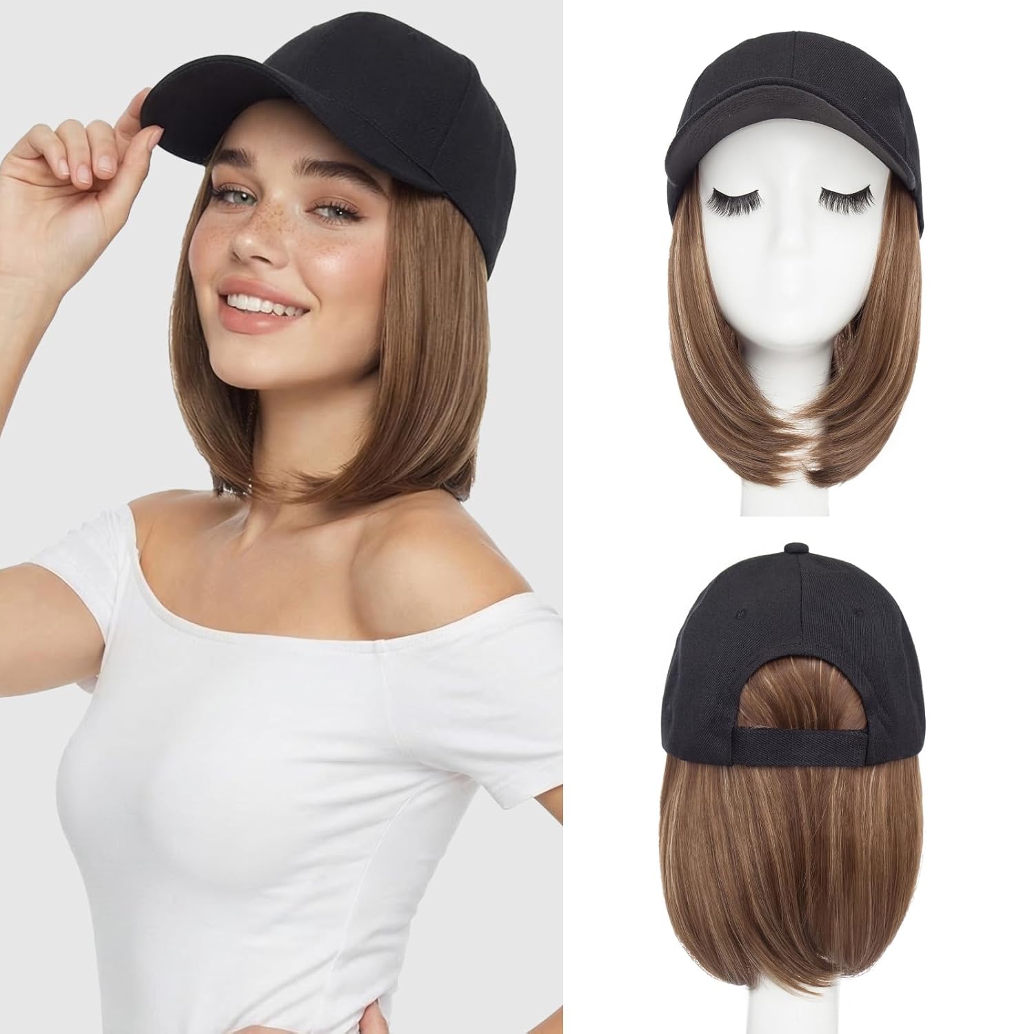 | Color | Grey Hat with Medium Brown Mix Dark Blonde Hair(Wavy) |