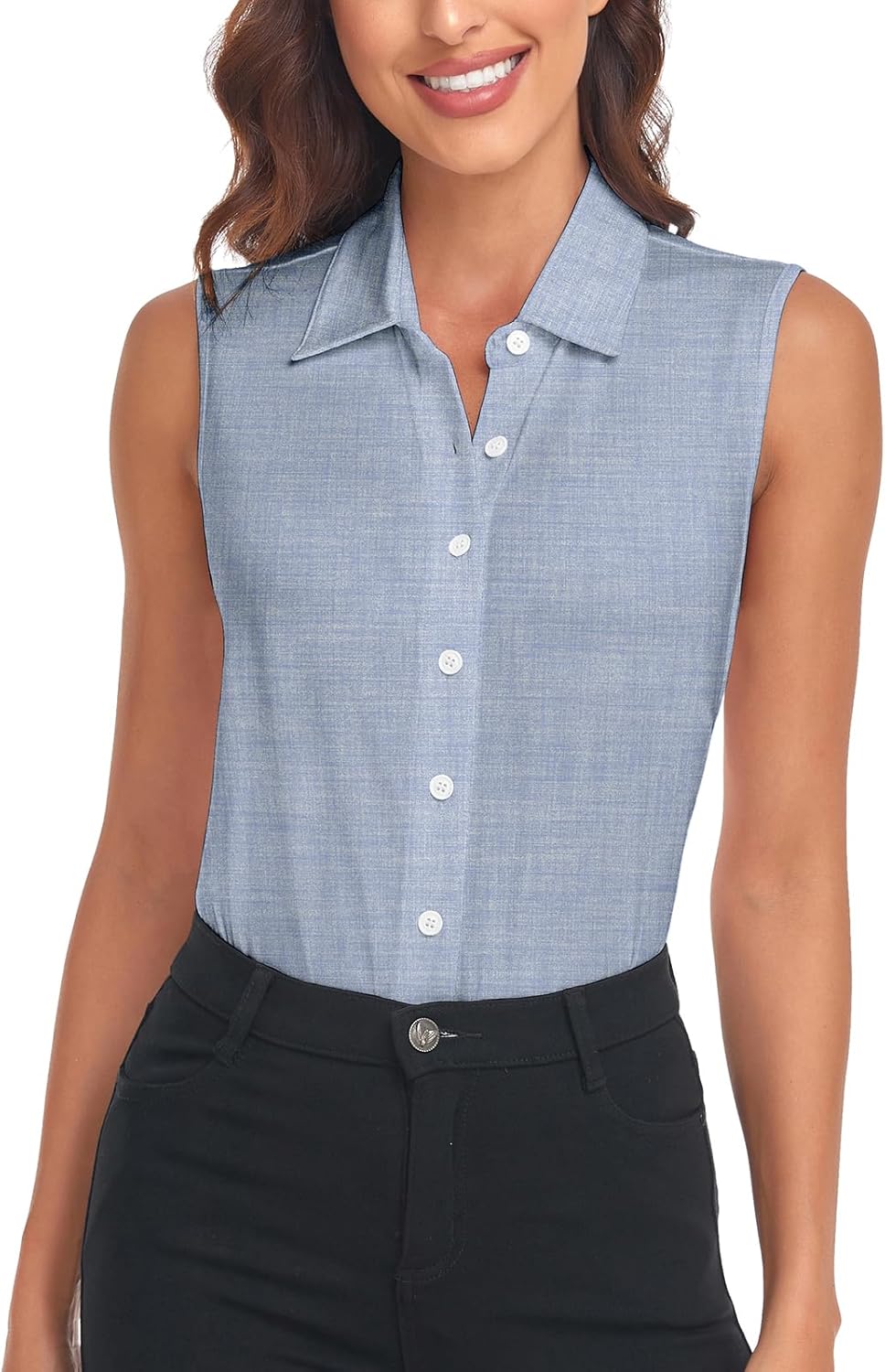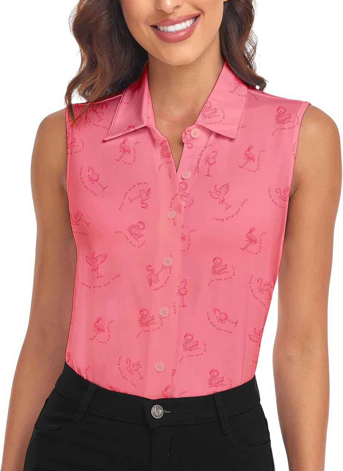 • 【Sleeveless Button Down Shirts for Women Materials】: Womens Sleeveless Polo Shirt adopts breathable lightweight, moisture wicking, help you pull sweat away from the body. Golf tank top for women keeps you cool for ultimate comfort as you play your round of golf
