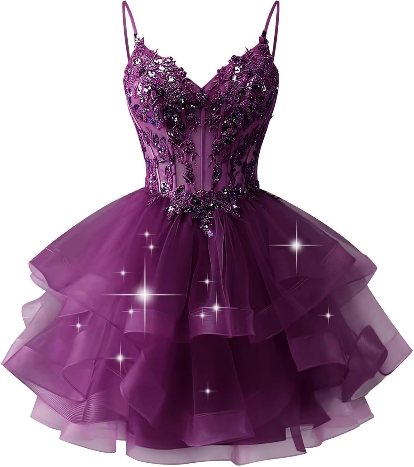 | Material Type | Tiered Tulle Homecoming Dresses Sparkly Lace Short Prom Dress for Teens Quinceanera DAMA Dress |