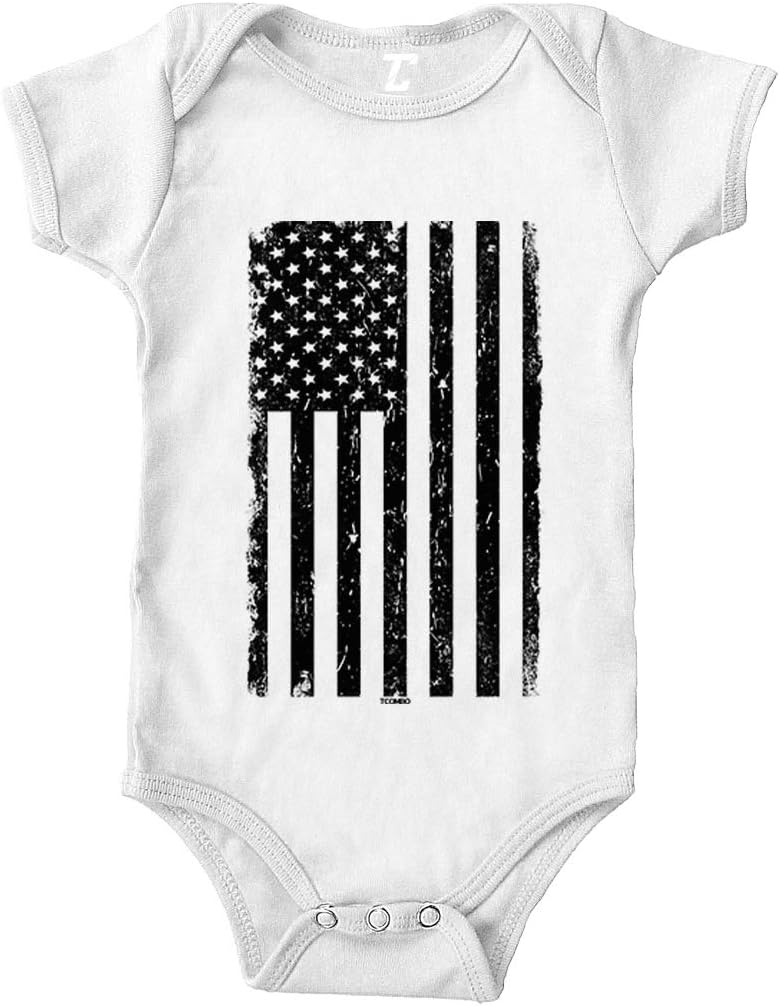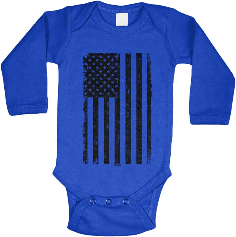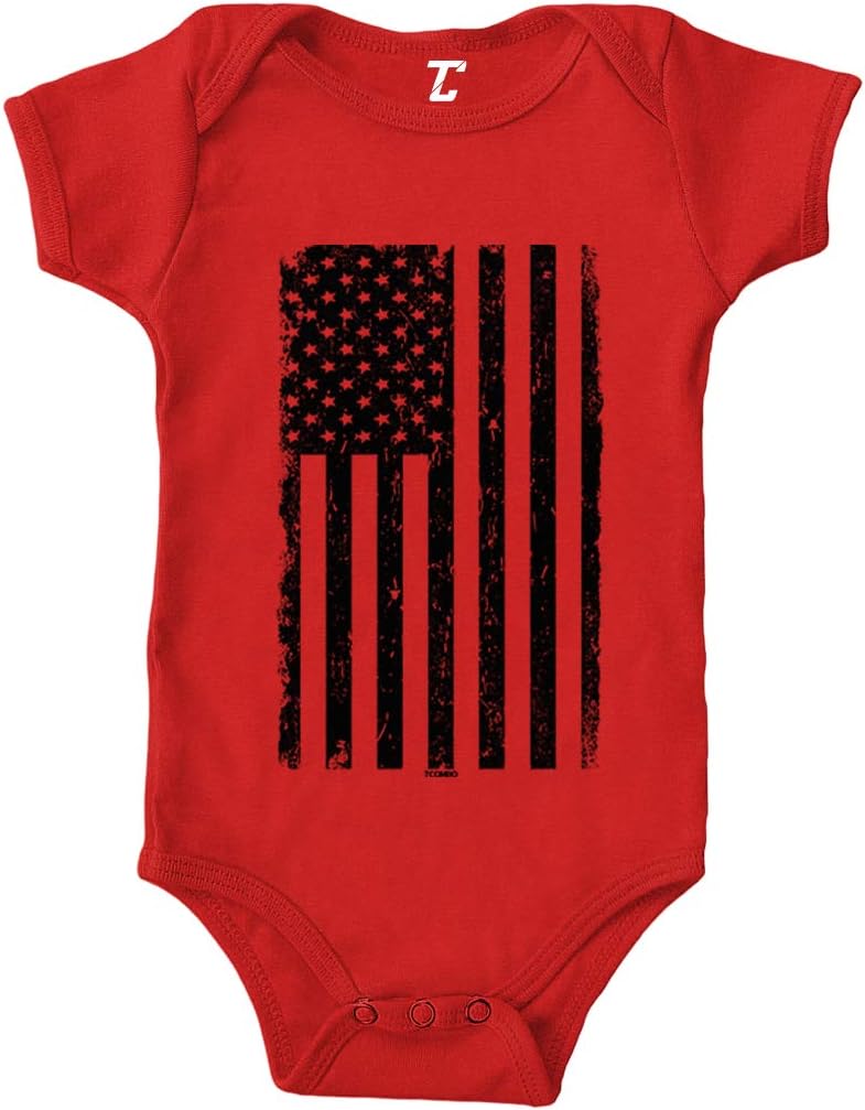 Looking for the perfect onesie to celebrate the 4th Of July? Look no further! This vintage Distressed Black American Flag - USA Bodysuit is a comfortable, affordable way for your child to express themselves. Whether purchasing for a son, daughter, or grandchild you can be sure to put a smile on their face. The design is printed on a soft, comfortable, 100% combed ringspun cotton bodysuit. This amazing onesie will become a staple in your child's wardrobe. Features 1x1 baby rib and lap shoulders to make it easier for the many times a day parents change the baby's outfit.